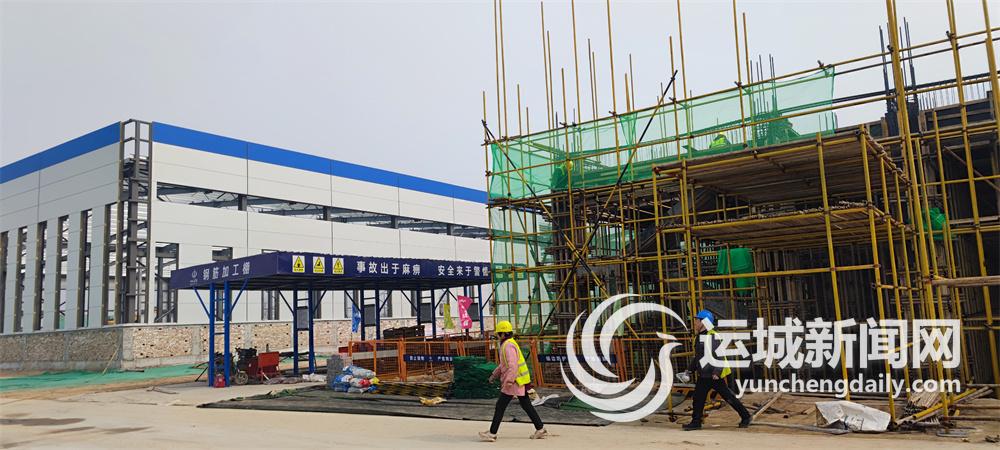 在平陆县汽车新材料工业园晨虹(山西)新材料科技有限公司项目工地,标准化车间的主体结构和科研楼的一层主体已经完成。 记者 陈永年 摄
