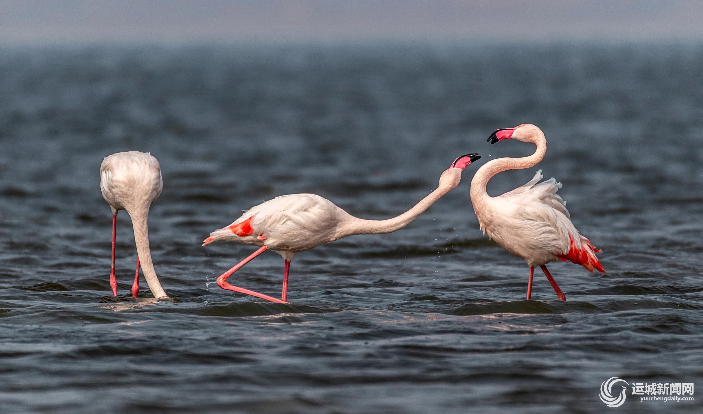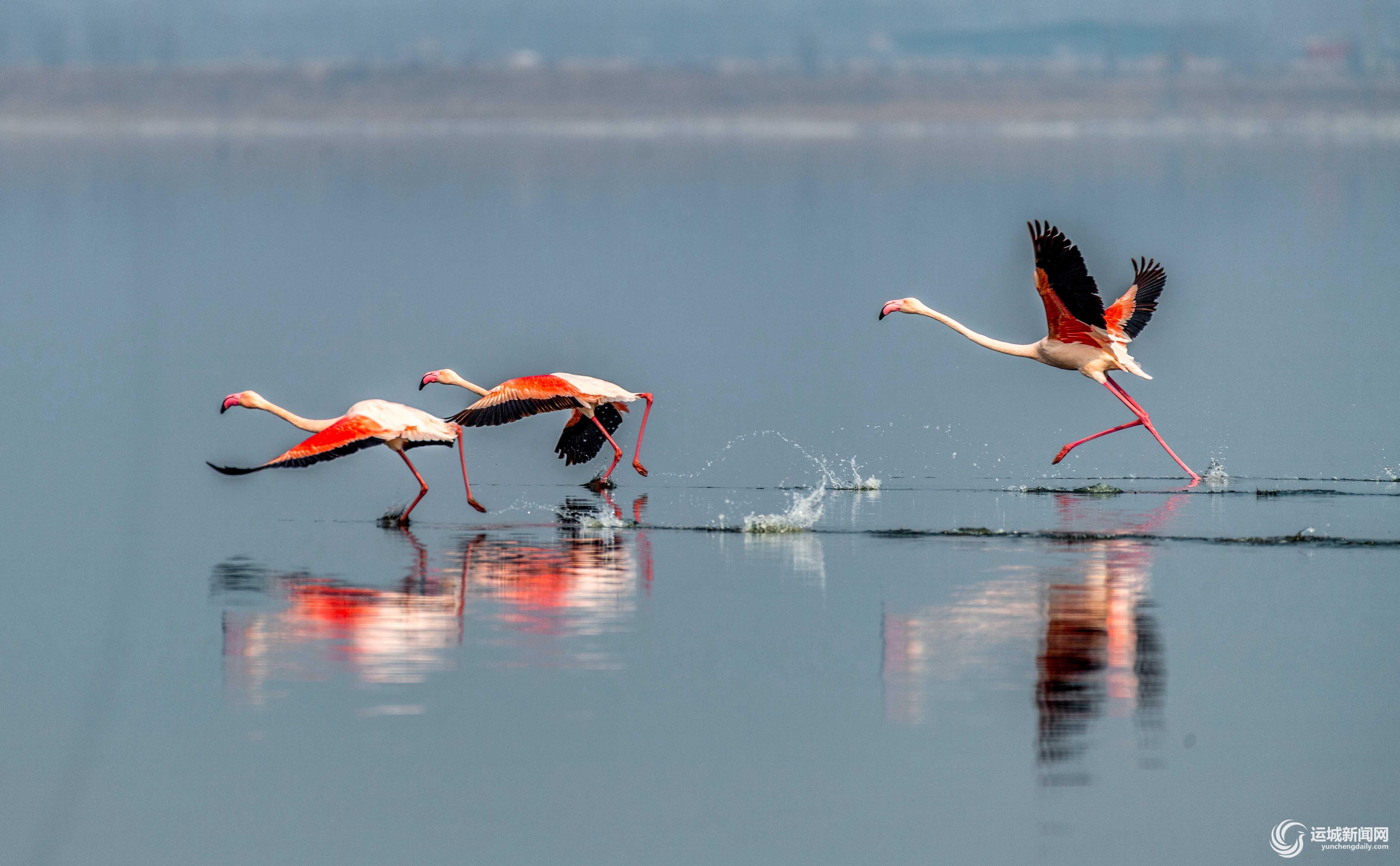 初春时节,栖息在运城盐湖湿地的火烈鸟,时而觅食、时而嬉戏、时而飞舞,成为春季盐湖一道亮丽的风景,吸引全国各地的摄影爱好者前来拍摄。 近年来,我市持续加大对盐湖生态环境的保护力度,盐湖生态环境持续向好,吸引了各种鸟类来此栖息,盐湖已成为鸟类的天堂。(记者 薛俊 摄)