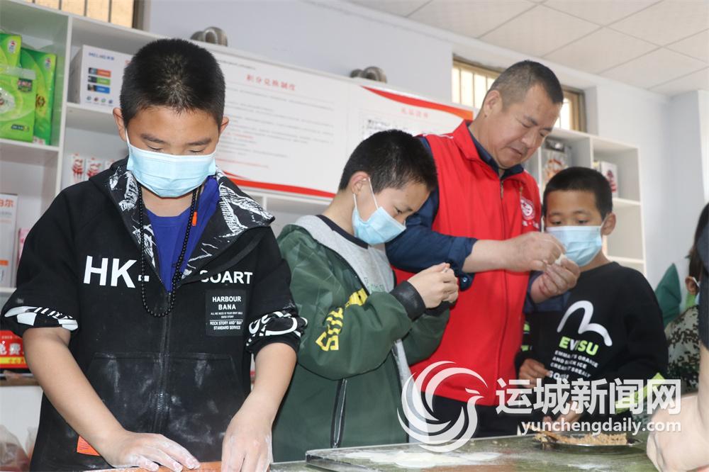 盐湖区第一时间志愿者协会会长张昌勤在“阳光之家”和孩子们一起包饺子。 李 洁 摄