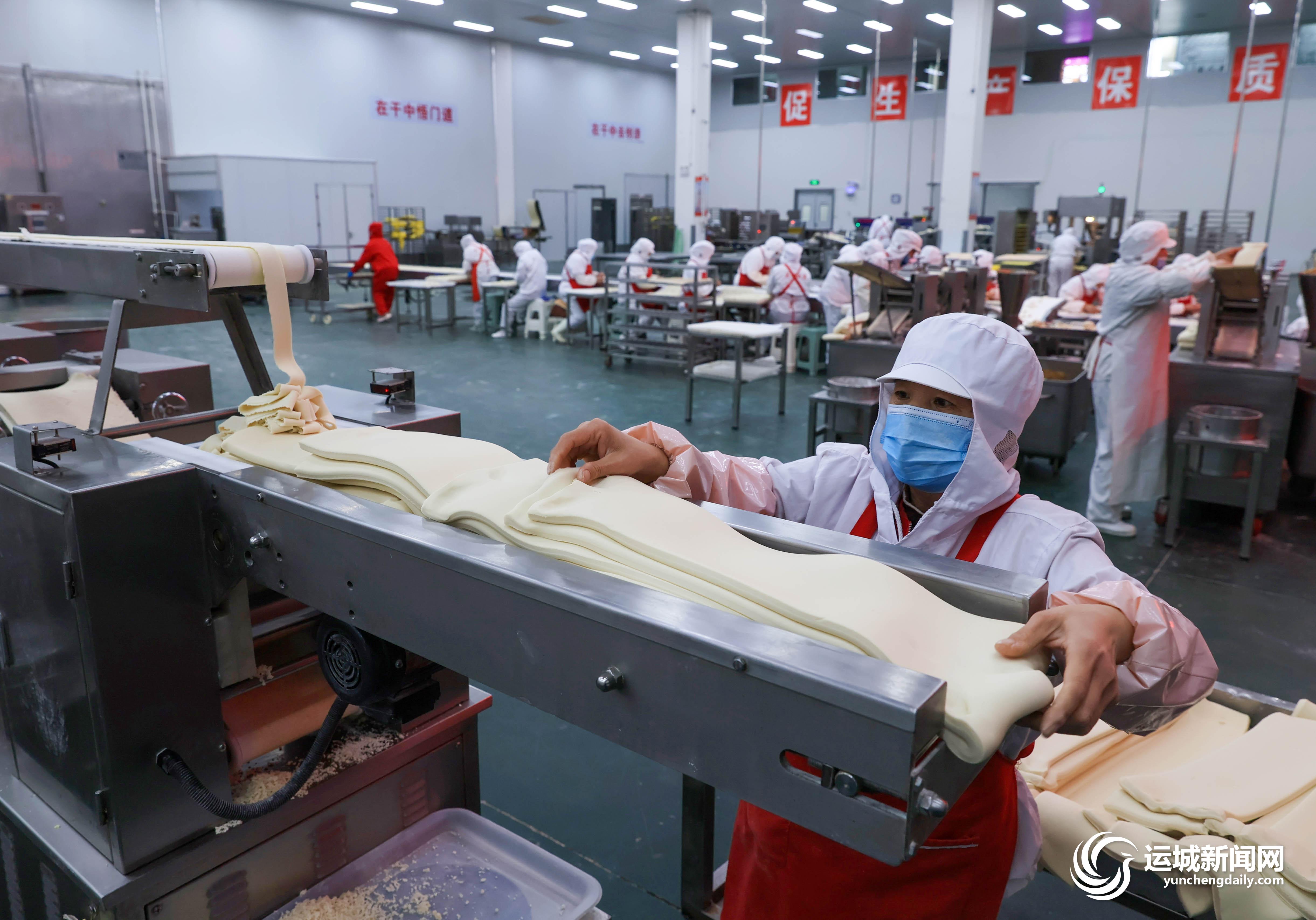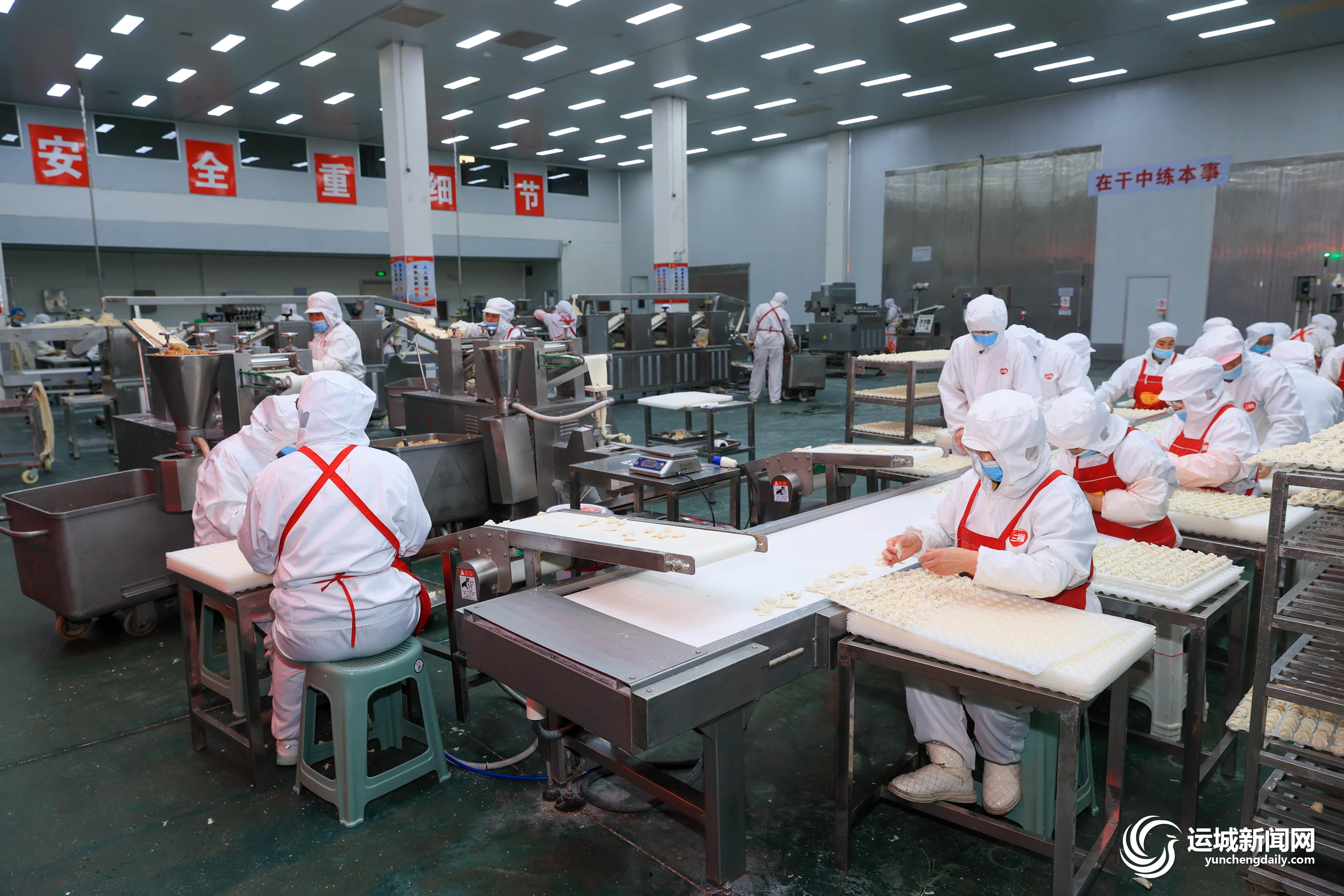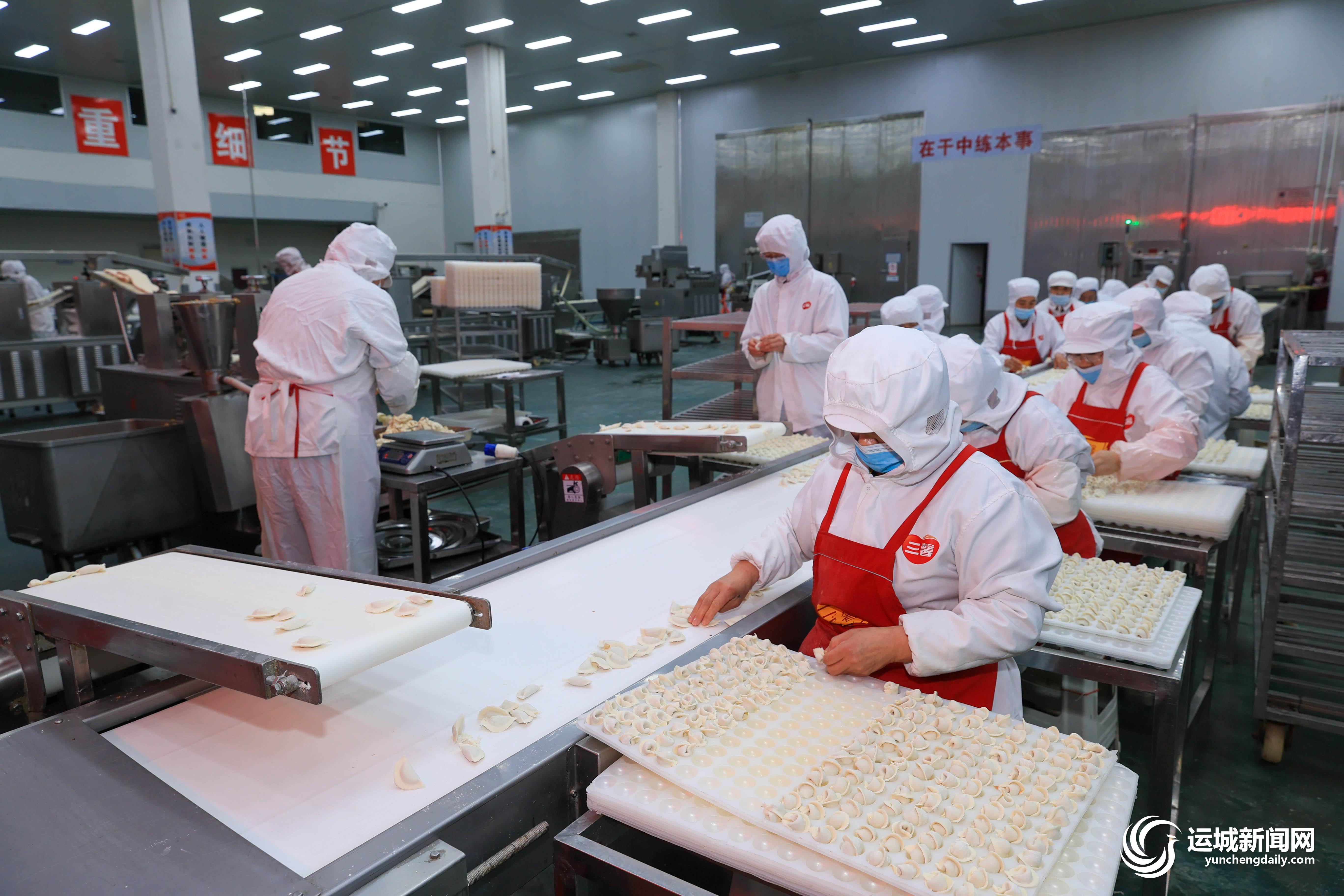 3月3日,在盐湖区三馨食品有限公司生产车间内,工人在加工速冻食品。