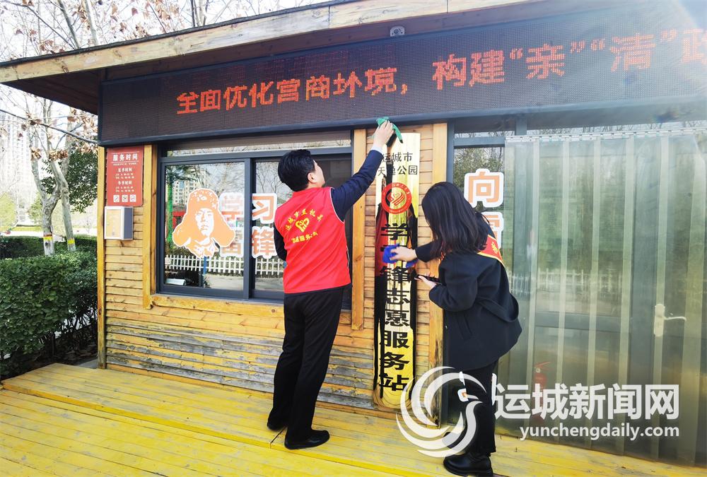 活动中,公园工作人员擦拭人行天桥栏杆、捡拾垃圾和摆放未规范停放的“小蓝”,并联合志愿者向游园市民宣传雷锋精神。