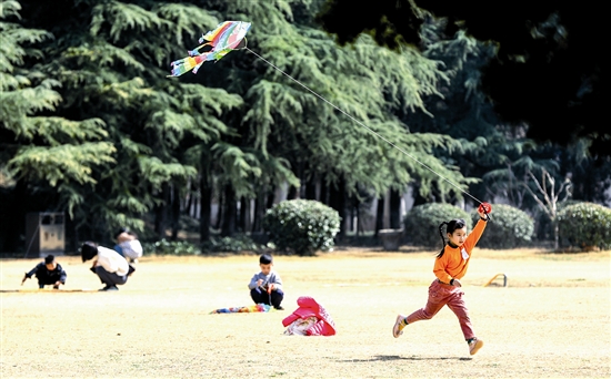 3月5日,孩子们在陕州公园玩耍嬉戏。
