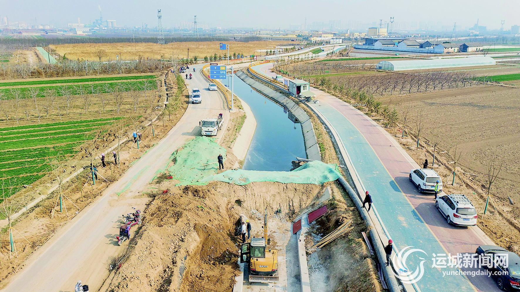 3月7日拍摄的涑水河临猗段河道综合治理提升项目现场。 近年来,临猗县坚持绿色发展理念,不断加大对涑水河临猗段污染治理和生态修复,持续开展河道综合治理提升工程。目前,整个项目有序推进。项目完成后,可有效减少水土流失、改善河道生态功能,提升周边的生态环境和人居环境。据悉,涑水河临猗段生态修复综合治理项目总投资1.46亿元,治理长度37.1km,主要进行河道清淤、河道生态治理、坡脚混凝土挡墙防护及护栏安装等。
