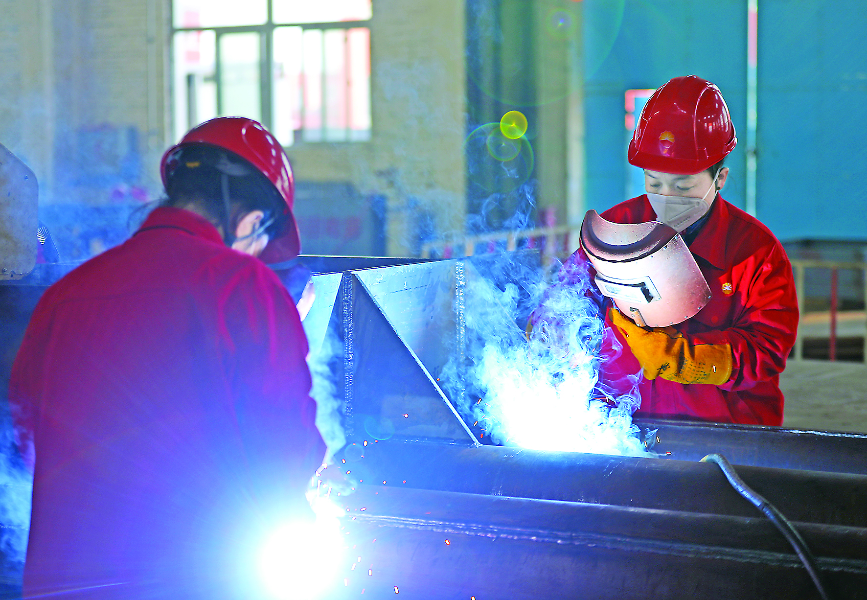 ▲2月27日,女子焊工班成员在焊接车间作业。
