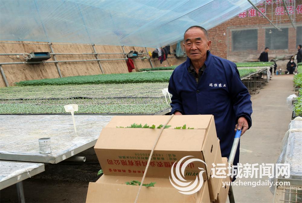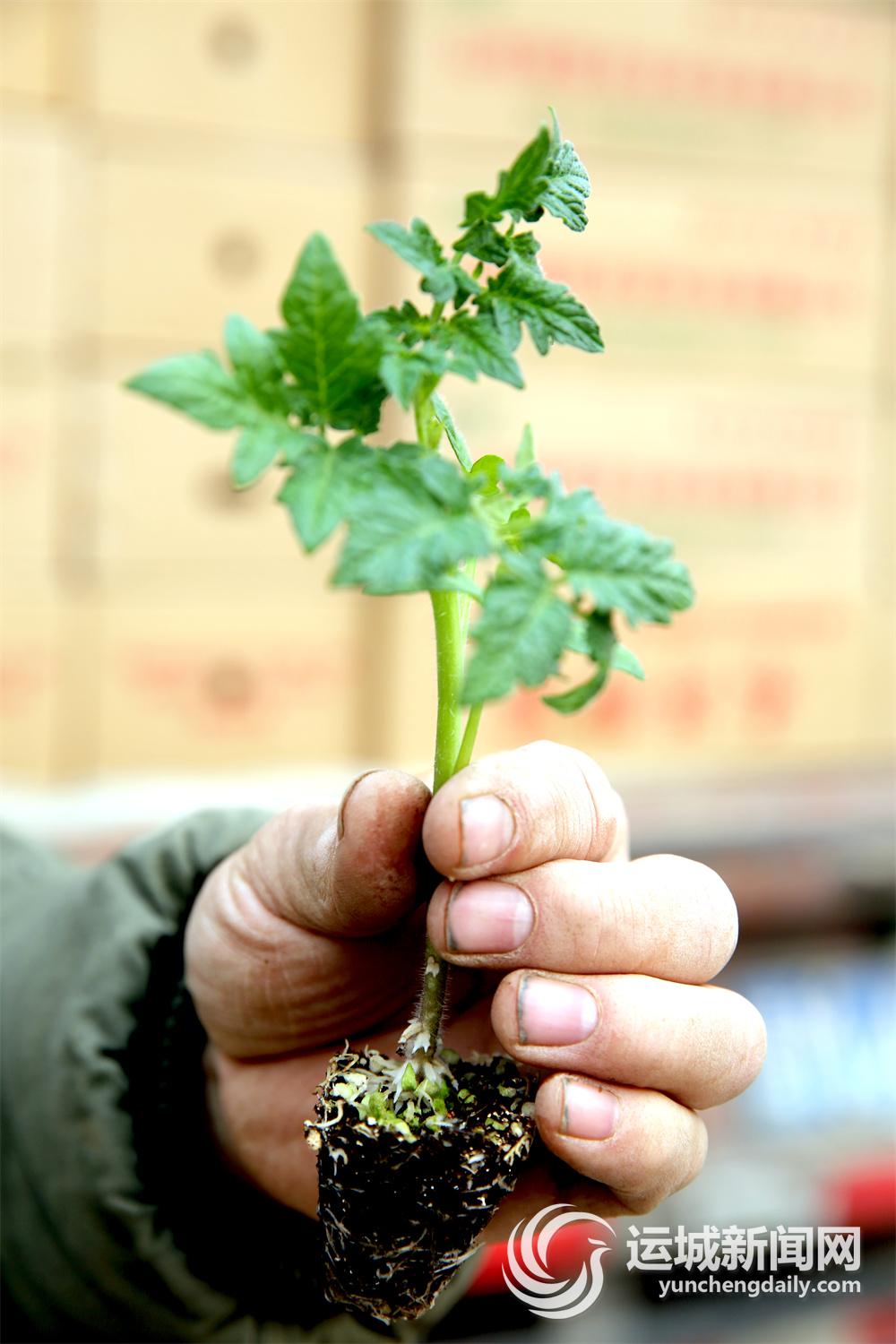 在一座育苗棚前,工作人员正在将西红柿苗和甜瓜苗装车,“一共450箱,将发往临猗和盐湖”。