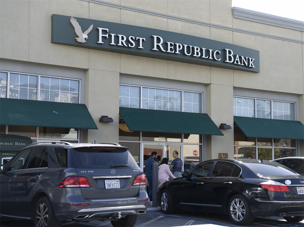 这是3月13日在美国加利福尼亚州米尔布雷市拍摄的第一共和银行营业部外景。