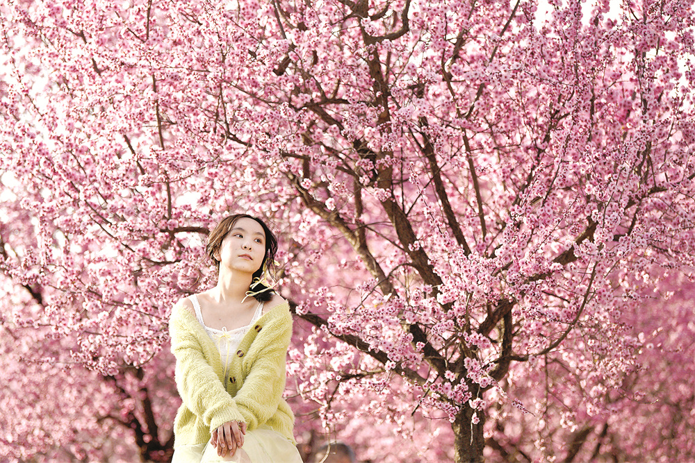 3月14日,游人在西安大明宫国家遗址公园内赏花留影。 近日,西安大明宫国家遗址公园内各色春花绽放,吸引市民及游人前来赏花游园,感受无限春光。 新华社记者 刘 潇 摄