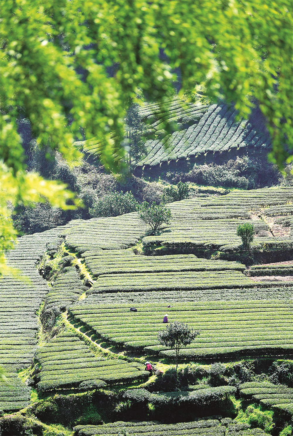 3月15日,湖北省恩施土家族苗族自治州宣恩县的茶农在采摘春茶。随着气温回暖,多地春茶开采,茶农忙着采茶供应市场。 新华社发(宋 文 摄)
