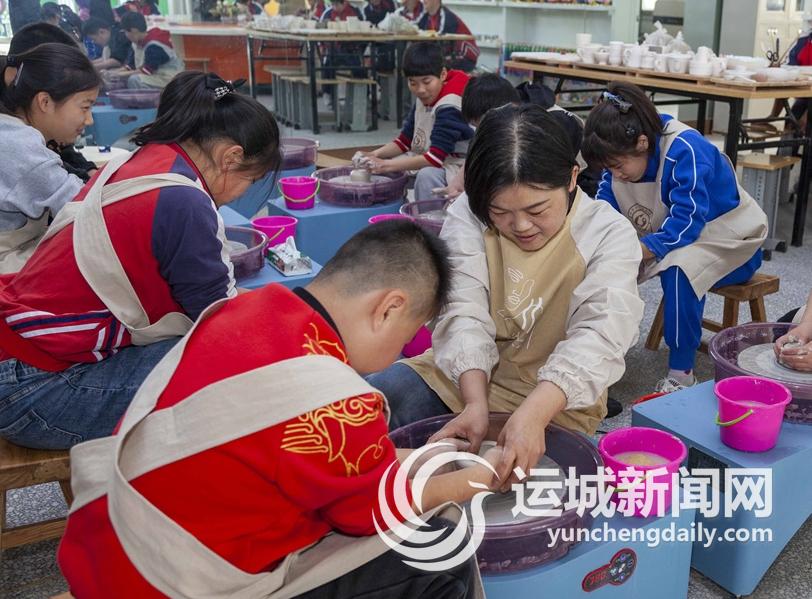 3月10日,一名老师在陶艺教室指导学生制作陶艺。