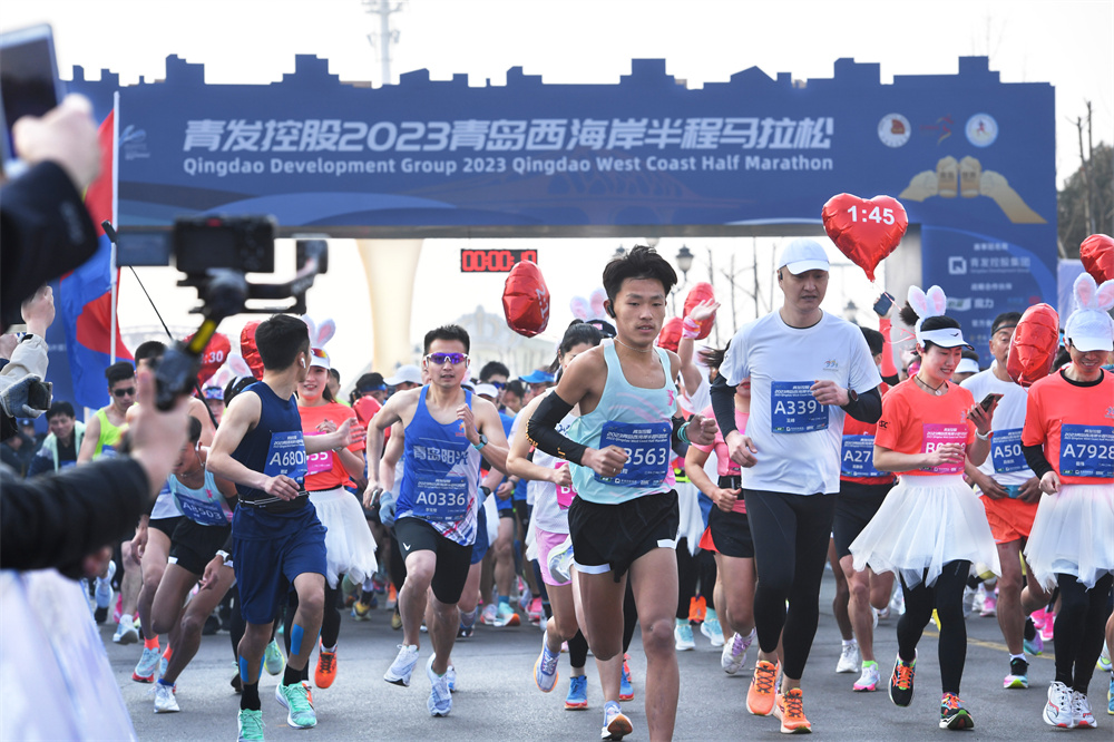 当日,2023青岛西海岸半程马拉松鸣枪起跑,此次赛事分为半程马拉松和5公里健康跑两个组别。 新华社记者 李紫恒 摄