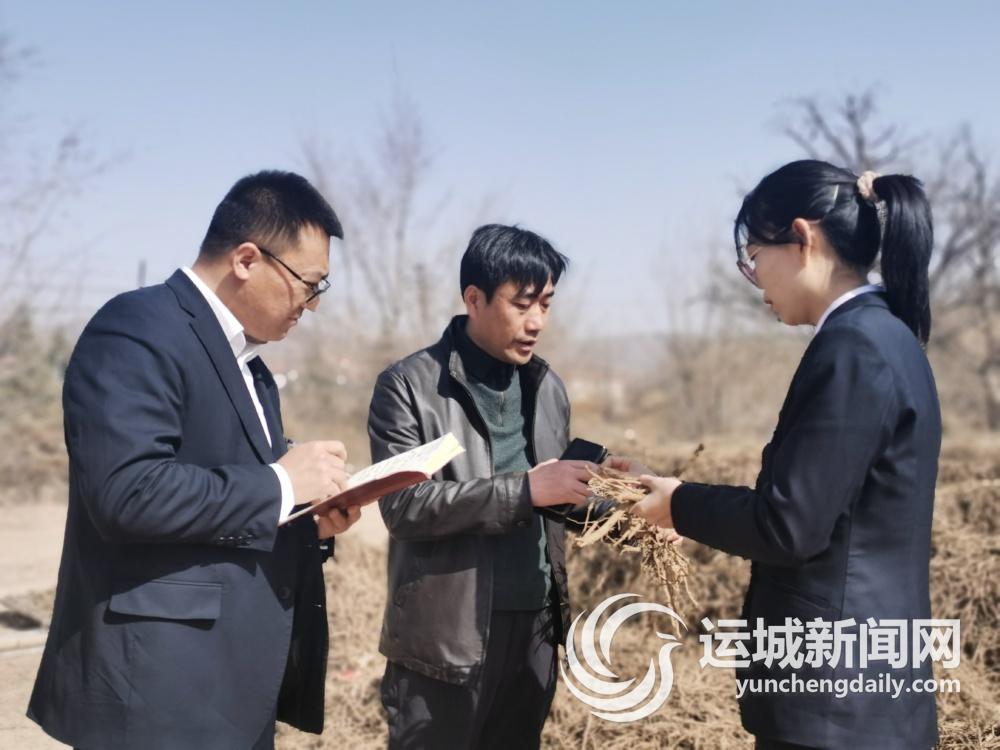 闻喜农商银行工作人员走访爱田道地中药材基地 赵泽斌 摄