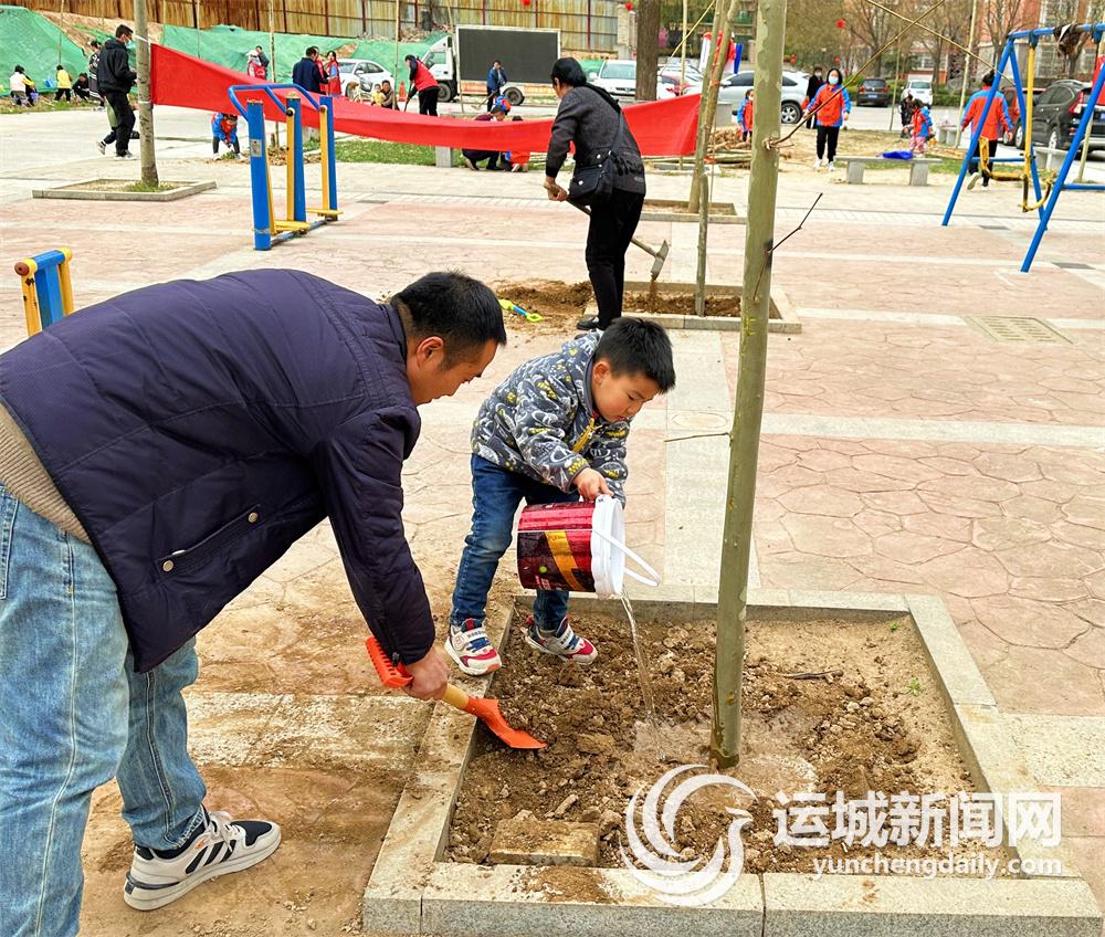 近日,盐湖区北城街道恒大绿洲社区联合天亿幼儿园,在辖区金世现代城小区和恒大绿洲小区开展“大手拉小手”义务植树活动。