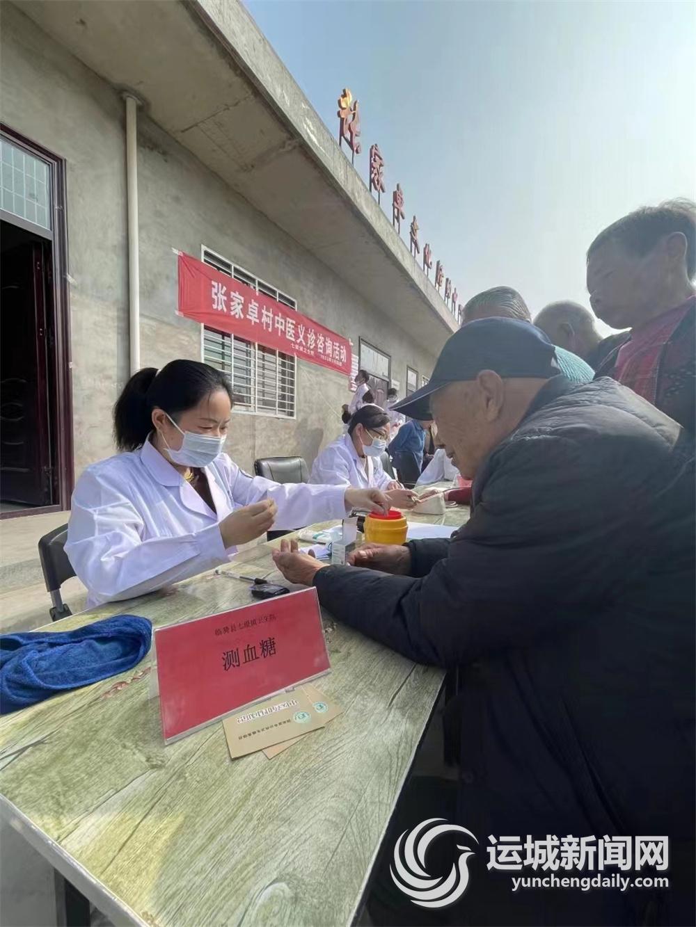 ▲3月21日,临猗县七级镇卫生院的医务人员来到辖区张家卓村开展义诊活动。