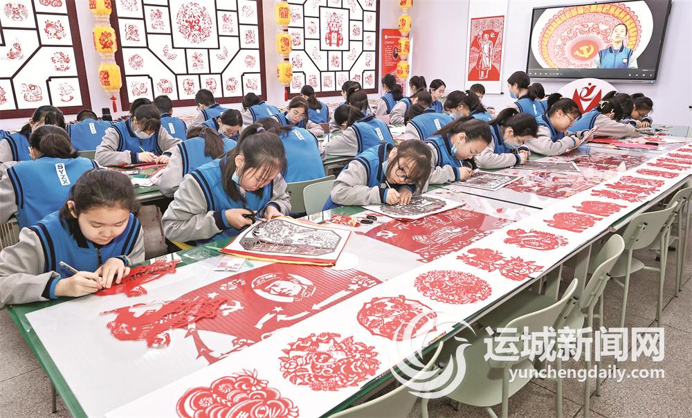 3月23日,市实验中学剪纸兴趣班的学生们在上“非遗”剪纸课,练习剪纸。