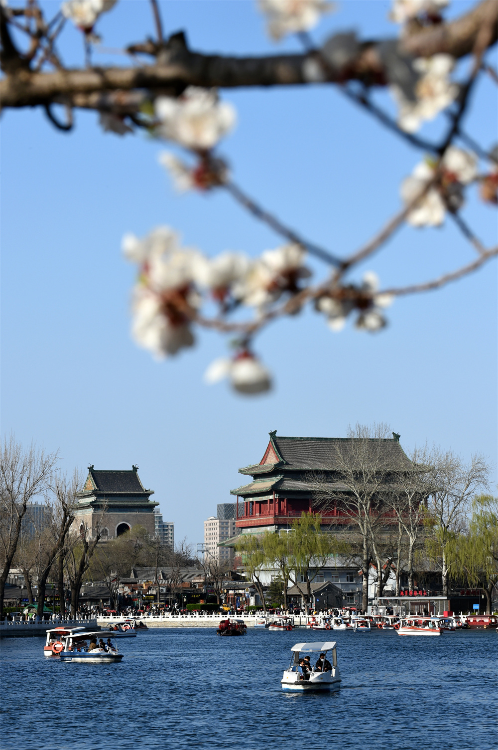 这是近日拍摄的北京钟鼓楼附近的景色。春回大地,北京各种花卉竞相绽放,人们纷纷到户外赏花踏青,乐享春光。 新华社记者 罗晓光 摄