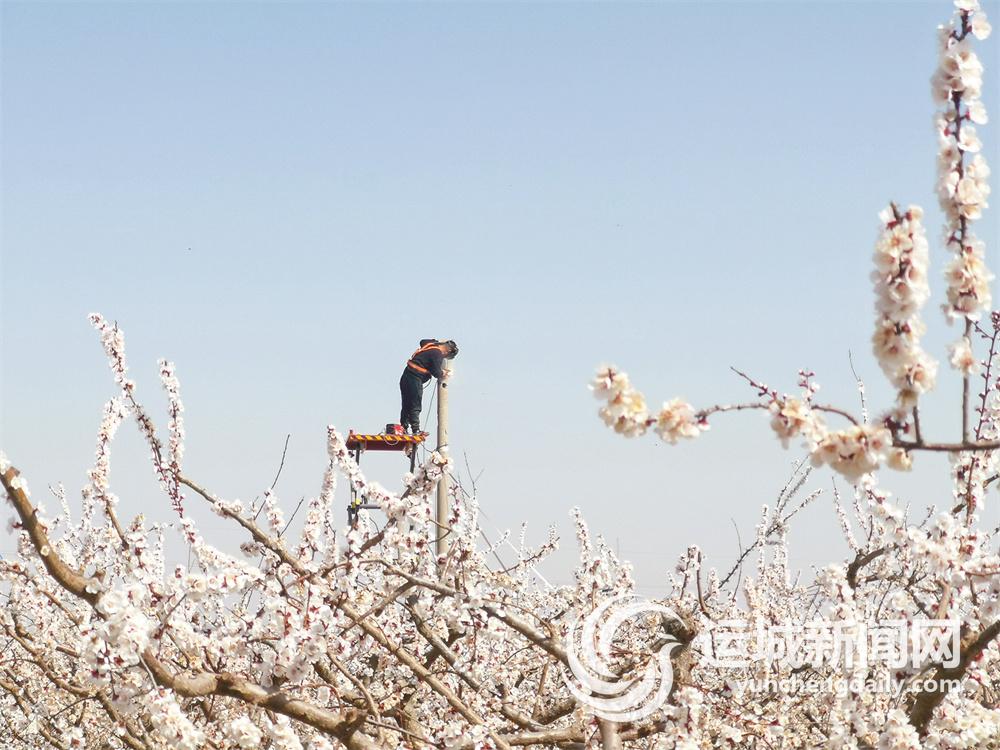 “霜冻挺厉害的,我前一天晚上光木渣就烧了12袋,所以今天赶紧把新买的防霜冻风机搭上。”3月下旬,在了解到这一“神器”后,临猗县临晋镇村民傅拴稳赶紧给自己的杏树地安排了一台。