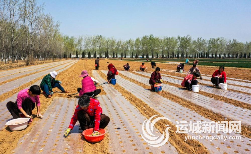 3月27日,夏县南大里乡北大里村一家庭农场抓住雨后良机,组织村民抢“墒”,播种中药材地黄,呈现出一幅美丽的“春耕图”。 特约摄影 张秀峰