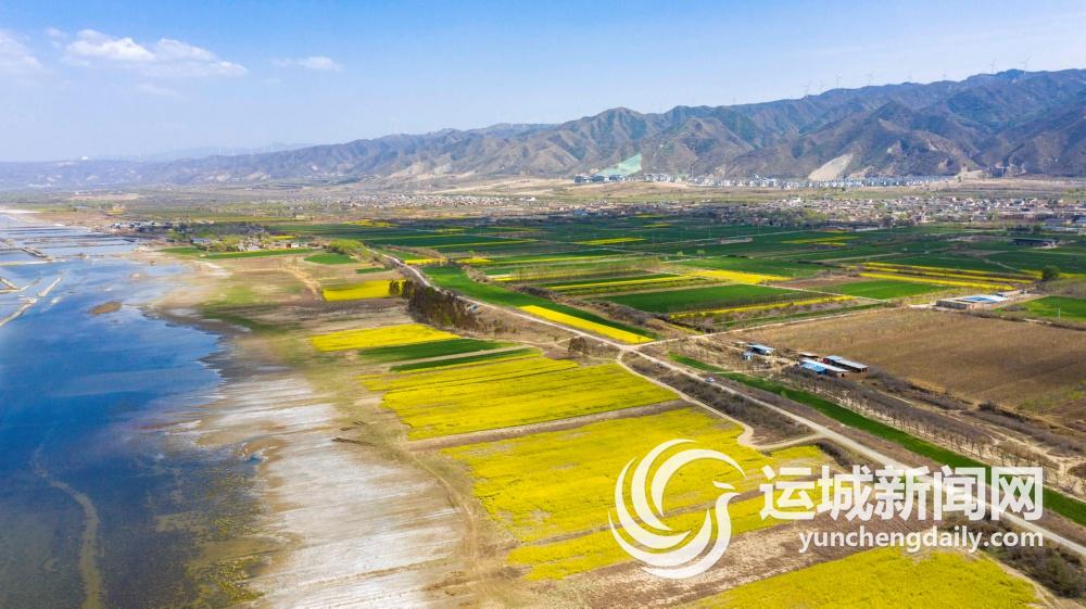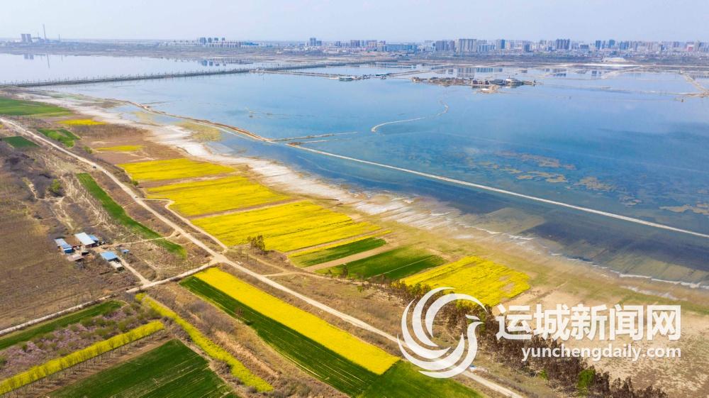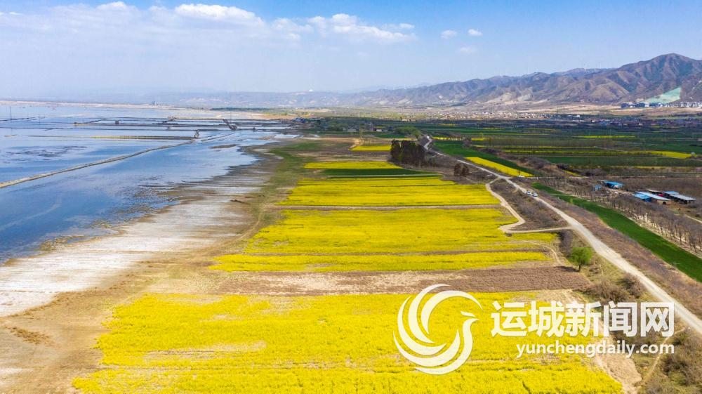 金色的油菜花海、水光潋滟的盐池及绿油油的麦田,构成一幅多彩的春日画卷,吸引游人沉醉花海,尽享生态美景。