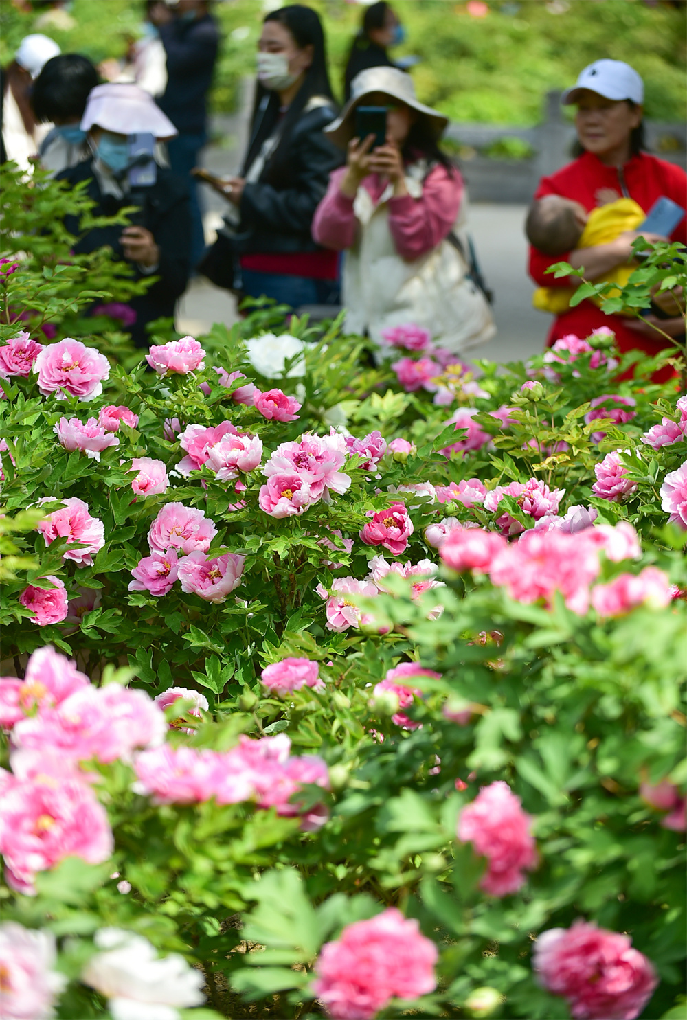 3月29日,游客在河南省洛阳市王城公园欣赏盛开的牡丹花。春暖花开时节,人们纷纷来到户外,赏花踏青,乐享春光。