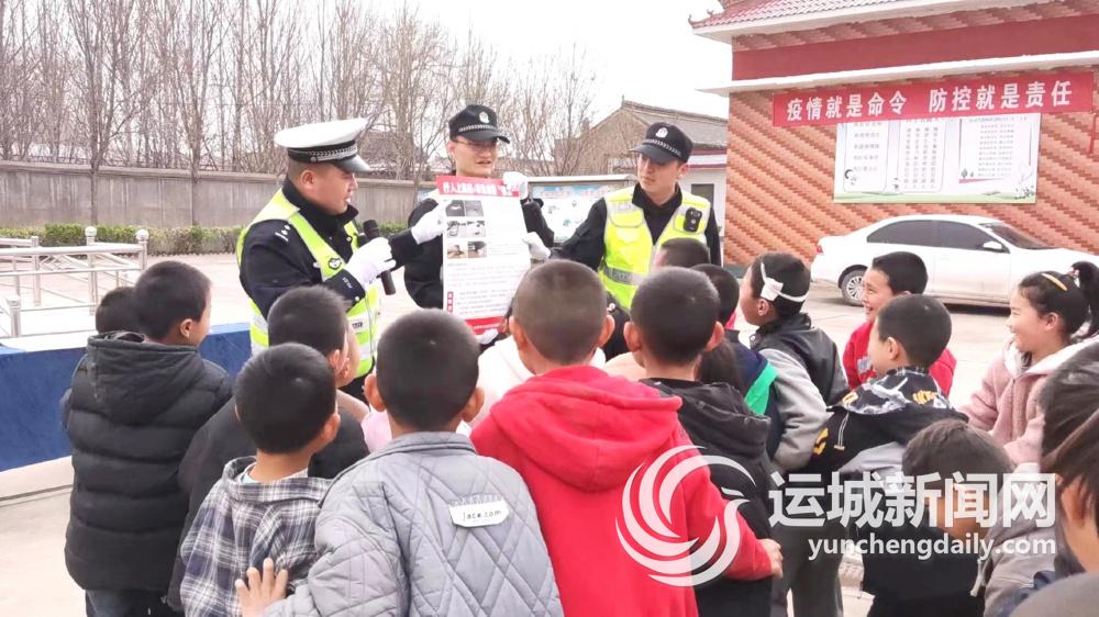 3月27日,山西高速交警四支队六大队民辅警,为河津市赵家庄街道义唐小学学生讲解交通安全知识。