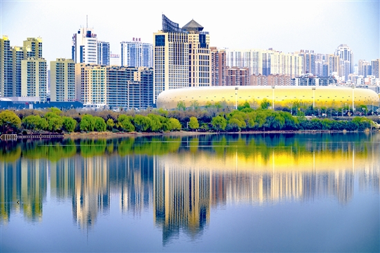 绿杨烟外晓寒轻,红杏枝头春意闹。春天里的“天鹅之城”,丝丝垂柳倒映在天鹅湖面,呈现出一派春意盎然、生机勃勃、欣欣向荣的景象。图为3月29日拍摄的市区一隅。 记者 杜杰 摄