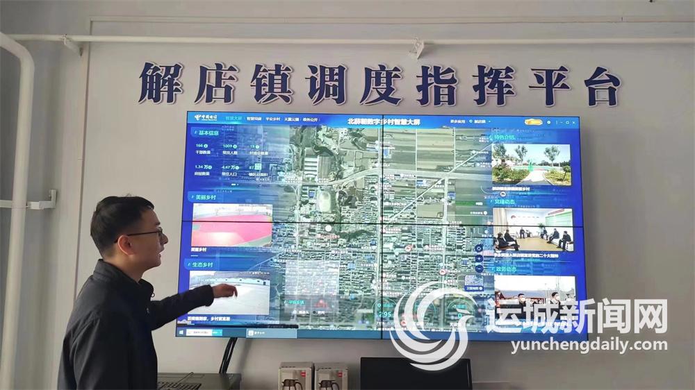工作人员在解店镇数字乡村调度指挥平台展示镇村互联功能。