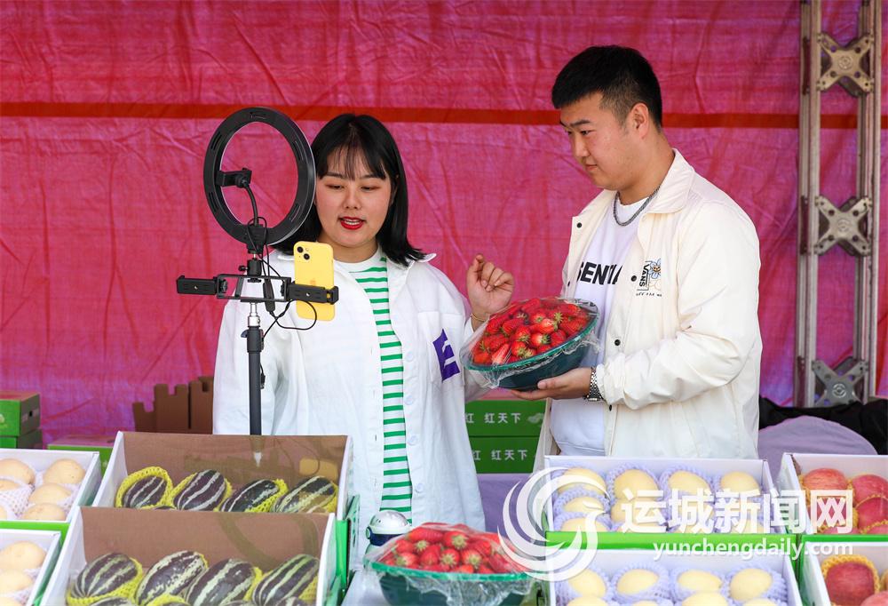 咏梨台广场上,河东非遗文化展、河东特色美食展、河东名优特产展等同期举办。网络红人“小胖和妈妈”母子俩在河东名优特产展位前开启直播,与直播间数千粉丝说说节会亮点、谝谝河东特产,把梨花节的“线下热”转化为“线上热”。