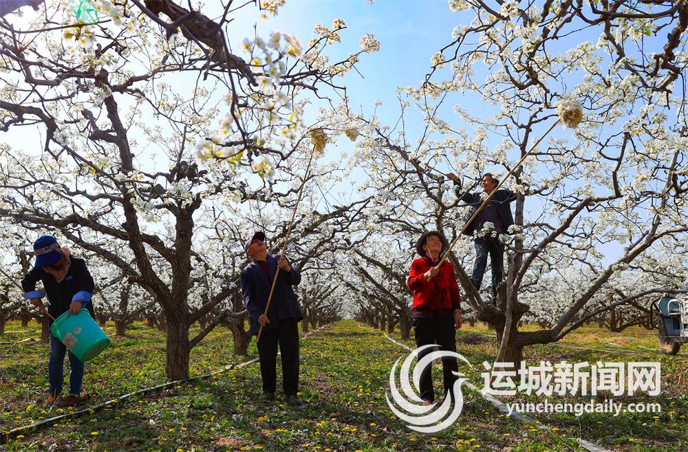 春潮澎湃,激荡万千气象。峨嵋岭前沿,涑水河岸畔,盐湖区泓芝驿镇3.5万亩梨花竞相怒放、随风涌动,勤劳的梨农踏着春天的鼓点,疏花、授粉,为金秋的丰收做足准备。
