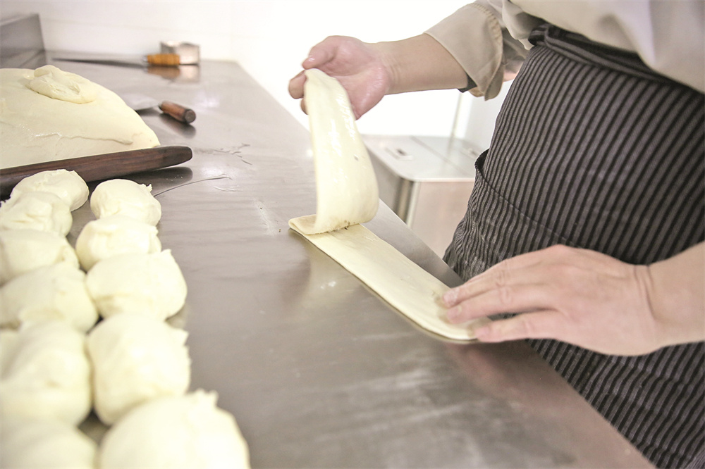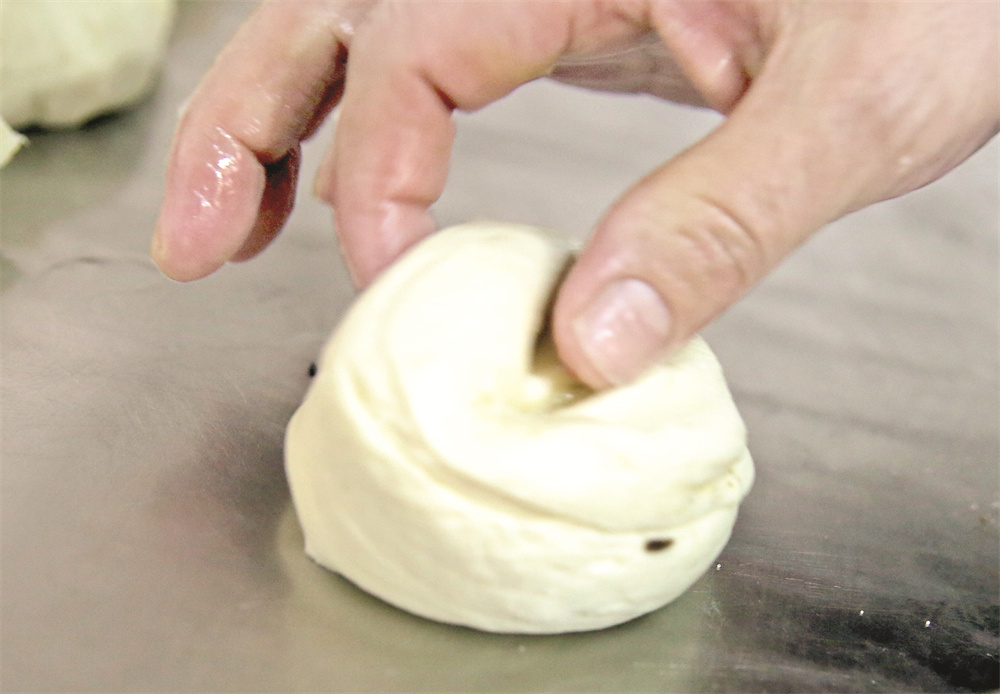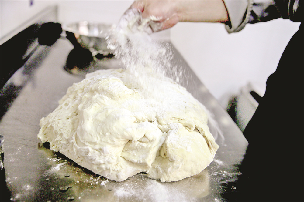 “打饼时,和面的水温和水量要把握好,发酵好的面团要使劲揉搓,直到用手摸起来光滑,没有气泡,那样做出的饼子才会吃着香、有嚼劲。”闫永峰说,这里的半圆饼之所以好吃,是由于其从进料源头抓起,注重操作中的每个细小环节,特别是在发面方面,用的是老酵进行发酵。