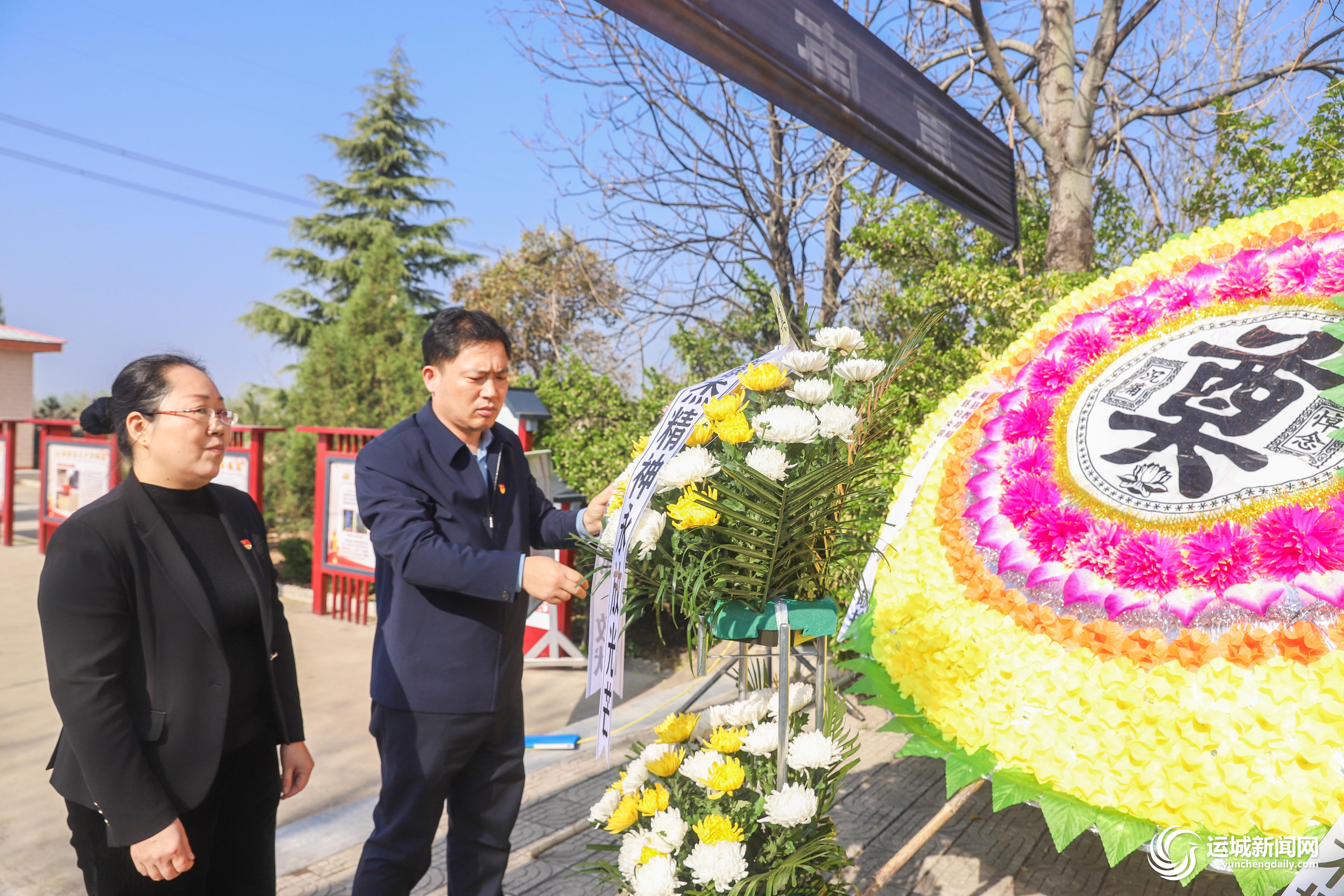 当日,在位于夏县胡张乡其毋村的嘉康杰烈士陵园,一行人在纪念碑前整装肃立,齐声共唱国歌。夏县县委统战部、县工商联、县侨联负责人代表敬献花篮(下图),并在庄严的音乐声中,集体默哀。