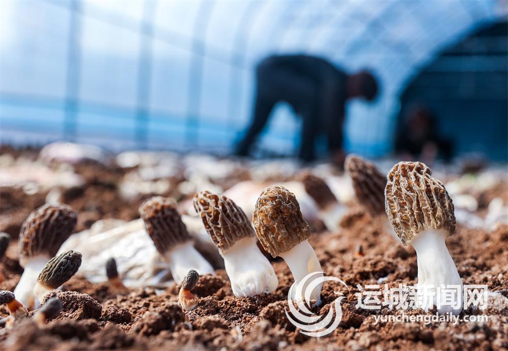运城晚报讯(记者 樊朋展 刘凯华)4月1日,在垣曲县清源村食用菌基地,农民在大棚里采摘羊肚菌。