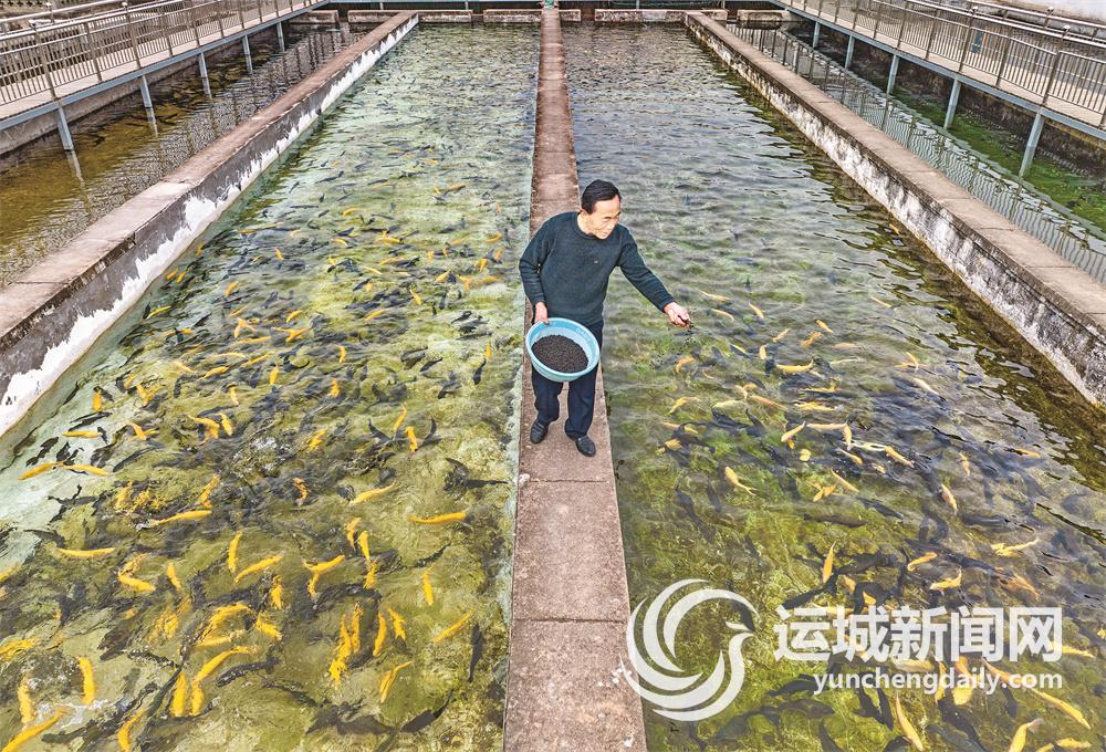 ▲4月4日,绛县润尊养殖场内,饲养人员在给虹鳟鱼和中华鲟投喂饲料。 该养殖场位于绛县南樊镇沸泉村,村中18摄氏度恒温流动泉水适宜养殖虹鳟鱼、中华鲟等。目前,该养殖场有养鱼池10个,鱼池存鱼量1万公斤以上,同时养殖场还对外开放,铺设了人行观光栈道,供人们参观游玩,带动了当地旅游业、餐饮业的发展,成为该村一道亮丽的风景线。记者 薛俊 摄
