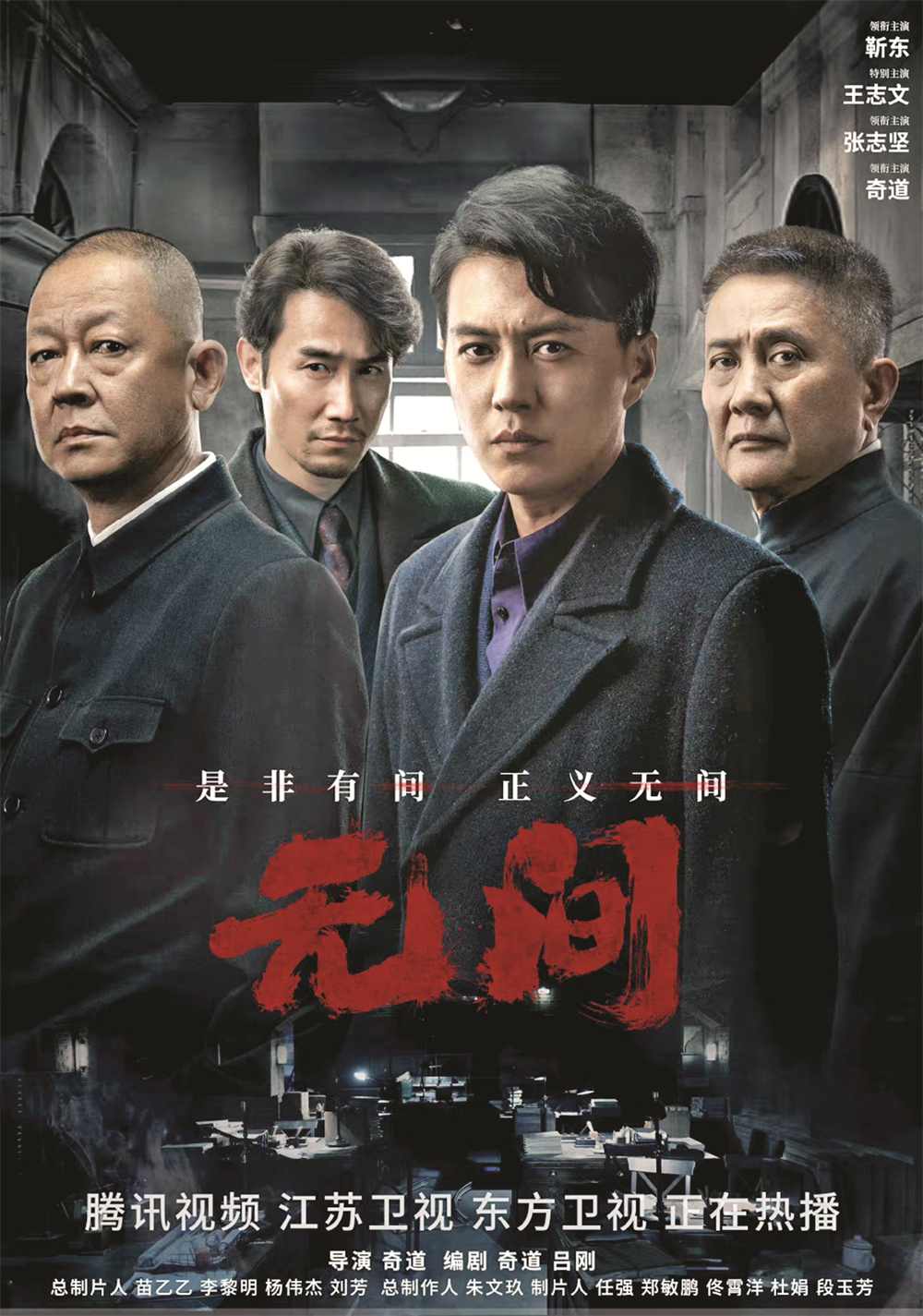 除了靳东,张志坚、王志文的出演,也让《无间》增色不少。其中他们有一场整整7页纸的对手戏,两位老戏骨的表演简直可用“震撼”来形容。“人物的准确、台词的准确、机位的准确、光位的准确,一气呵成,精准至极,堪称教科书式的表演。”奇道回忆道,当时剧组所有人都来看这场“巅峰对决”,“我也不用导戏,我更多的是欣赏。”