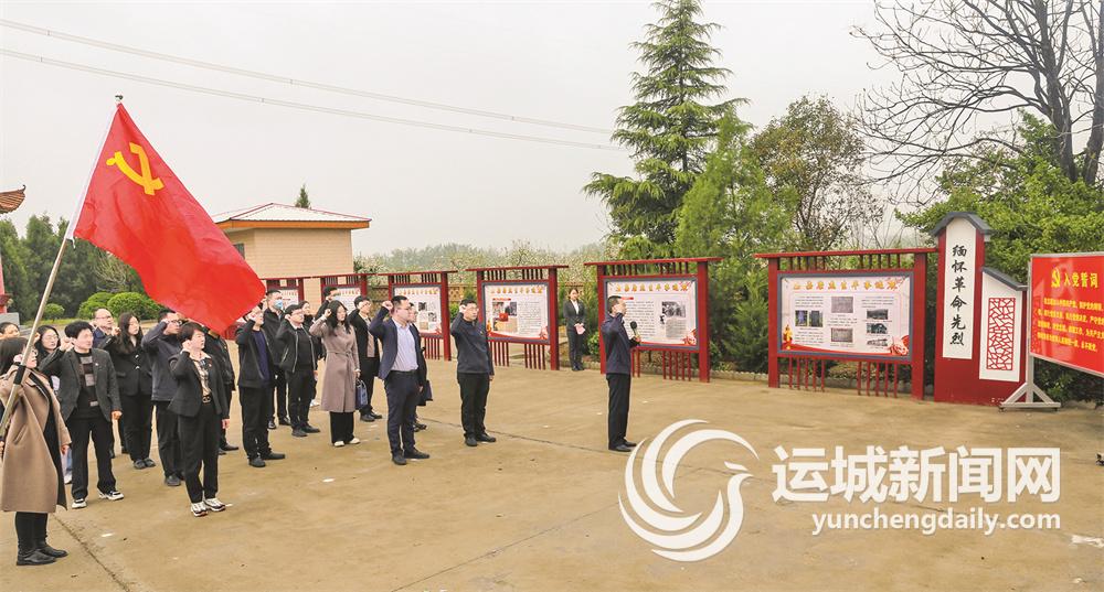 4月4日,夏县县委办党支部党员干部在嘉康杰烈士陵园重温入党誓词。