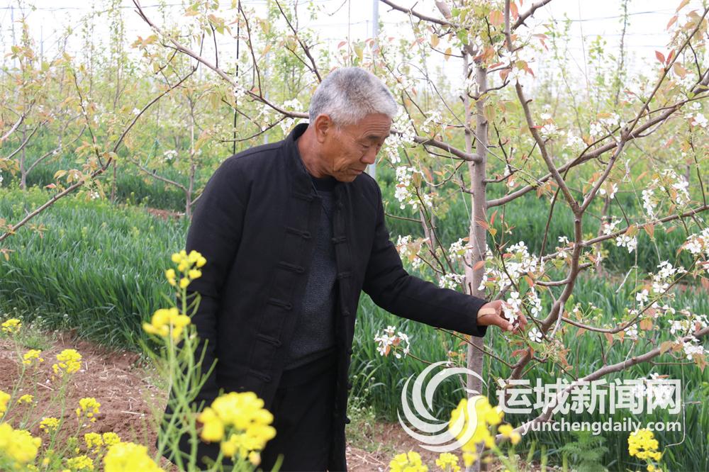 1959年出生的张立跃,从小就跟黄土地打交道。黝黑的皮肤、爽朗的笑容让这个30年都在和红香酥梨打交道的果农看起来神采奕奕。一见面,他便热情地为记者一行介绍今年梨花开放的盛景。