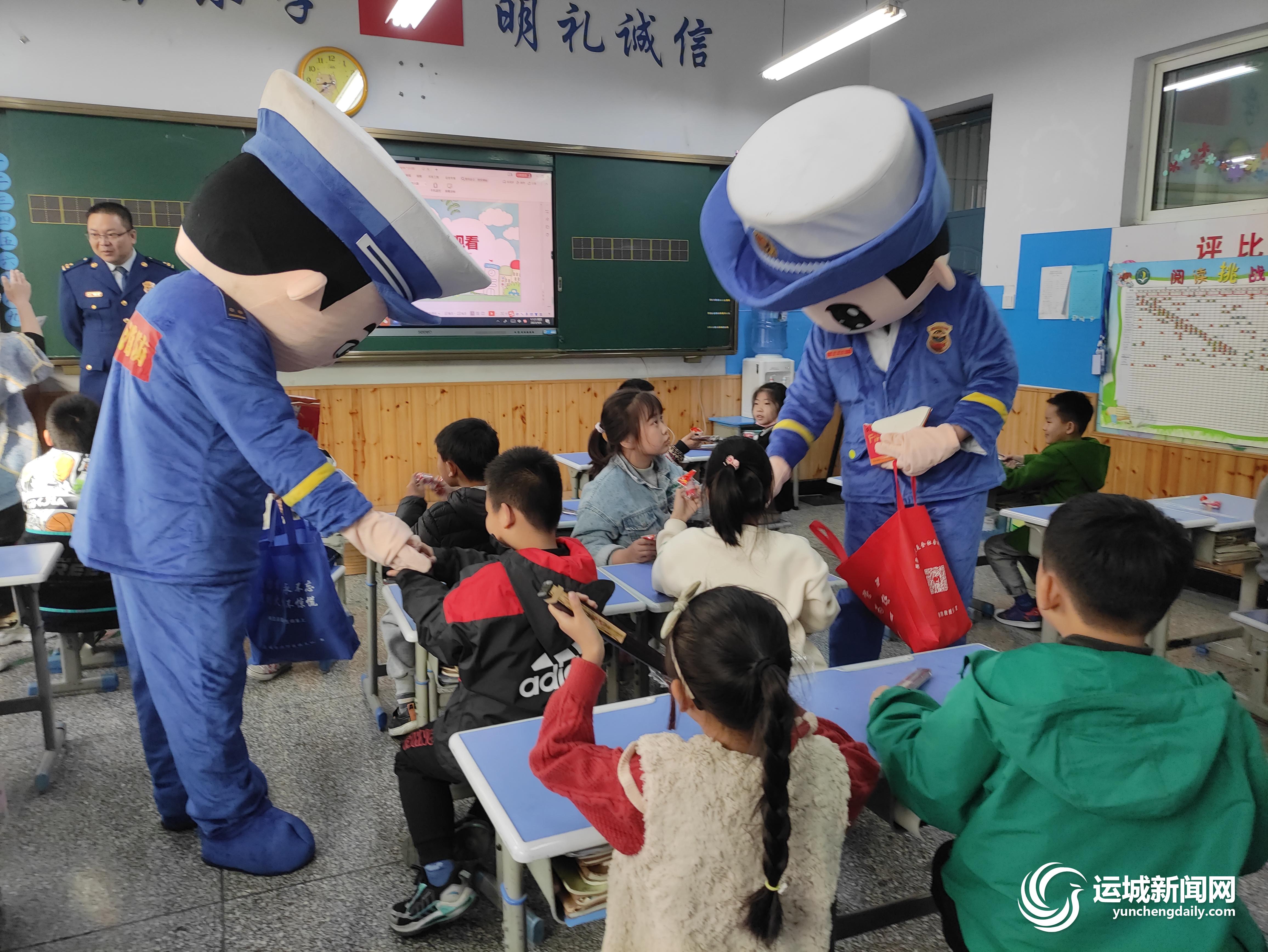 运城晚报讯(记者 寻霄)为提高辖区学校消防安全意识,预防和减少学校各类火灾事故的发生,4月6日,运城经济技术开发区消防救援大队宣传人员穿上消防卡通人偶走进明远小学,与学校师生进行互动,普及消防安全知识(下图)。
