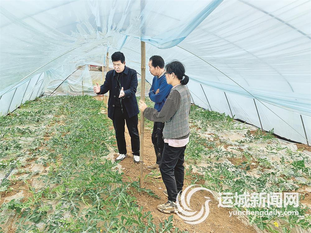 夏县宏伟瓜业专业合作社理事长田红卫在瓜棚内指导瓜农生产。 本报记者 余 果 摄