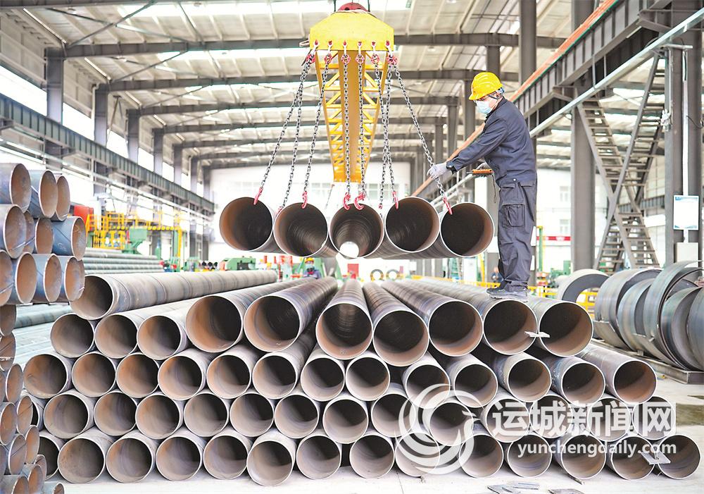 在标准化厂房的头一家,就是山西万流金属制品有限公司(以下简称“万流金属”)的生产车间。车间里,一根根碗口粗的螺旋钢管有序堆放,一捆捆钢管在天车的操作下有序出厂。