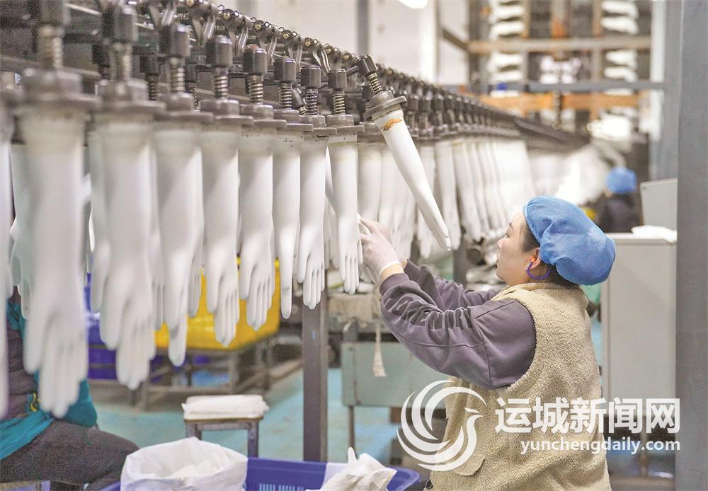 山西纳科医疗科技有限公司丁腈手套生产线在繁忙生产中。本报记者 陈方斌 摄