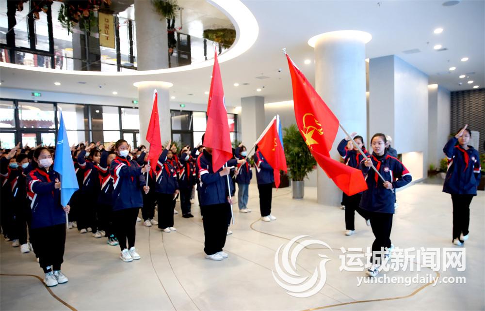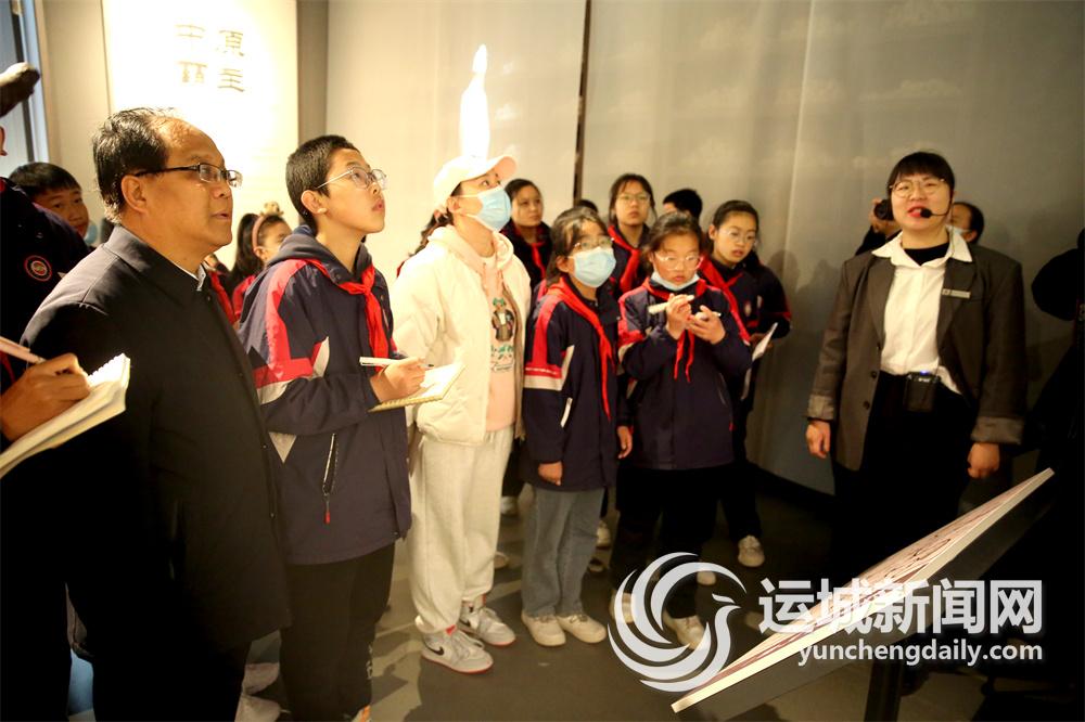活动现场气氛庄严,该校学生行少先队礼、合唱《中国少年先锋队队歌》。随后,学生们在讲解员的带领下有序参观河东历史文化展示中心。河东历史文化展示中心是2022年运城市重点项目,是弘扬河东先贤事迹、彰显运城文化魅力的一项重要民生工程。该中心共有7个展厅、两个剧场,通过数字化、沉浸式、多媒体方式的演绎,展示了从华夏始祖到变革先驱等近百位河东名人事迹。