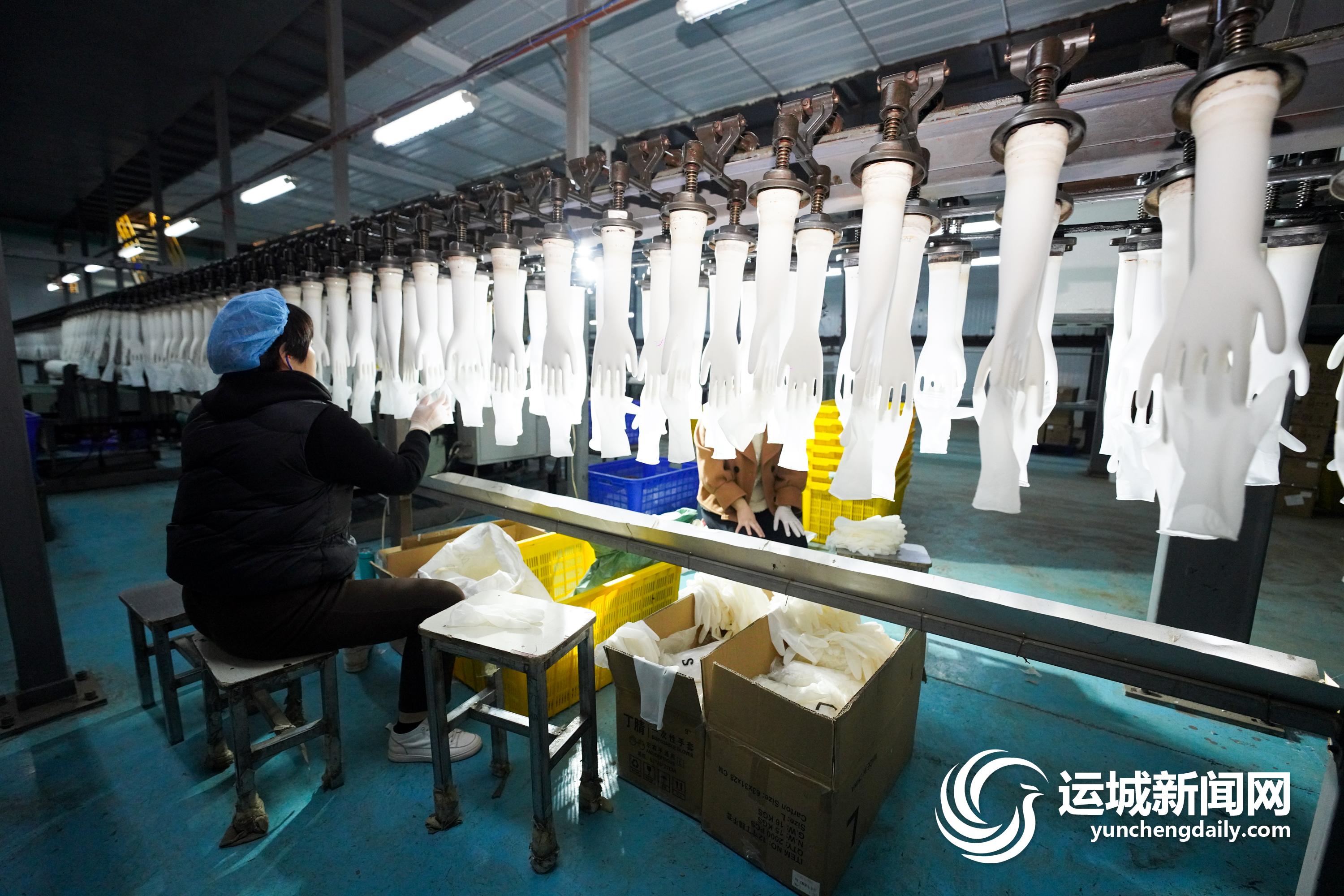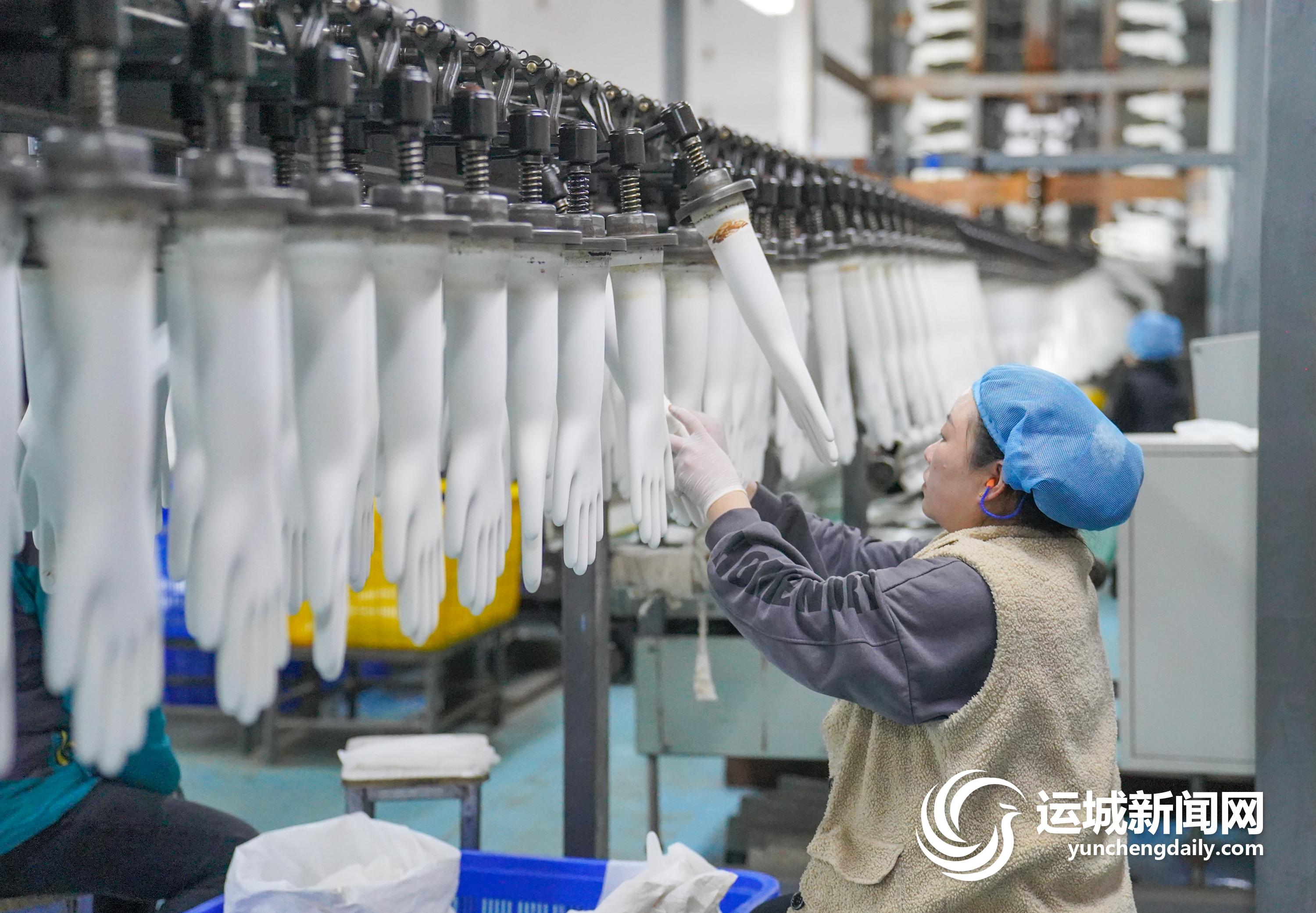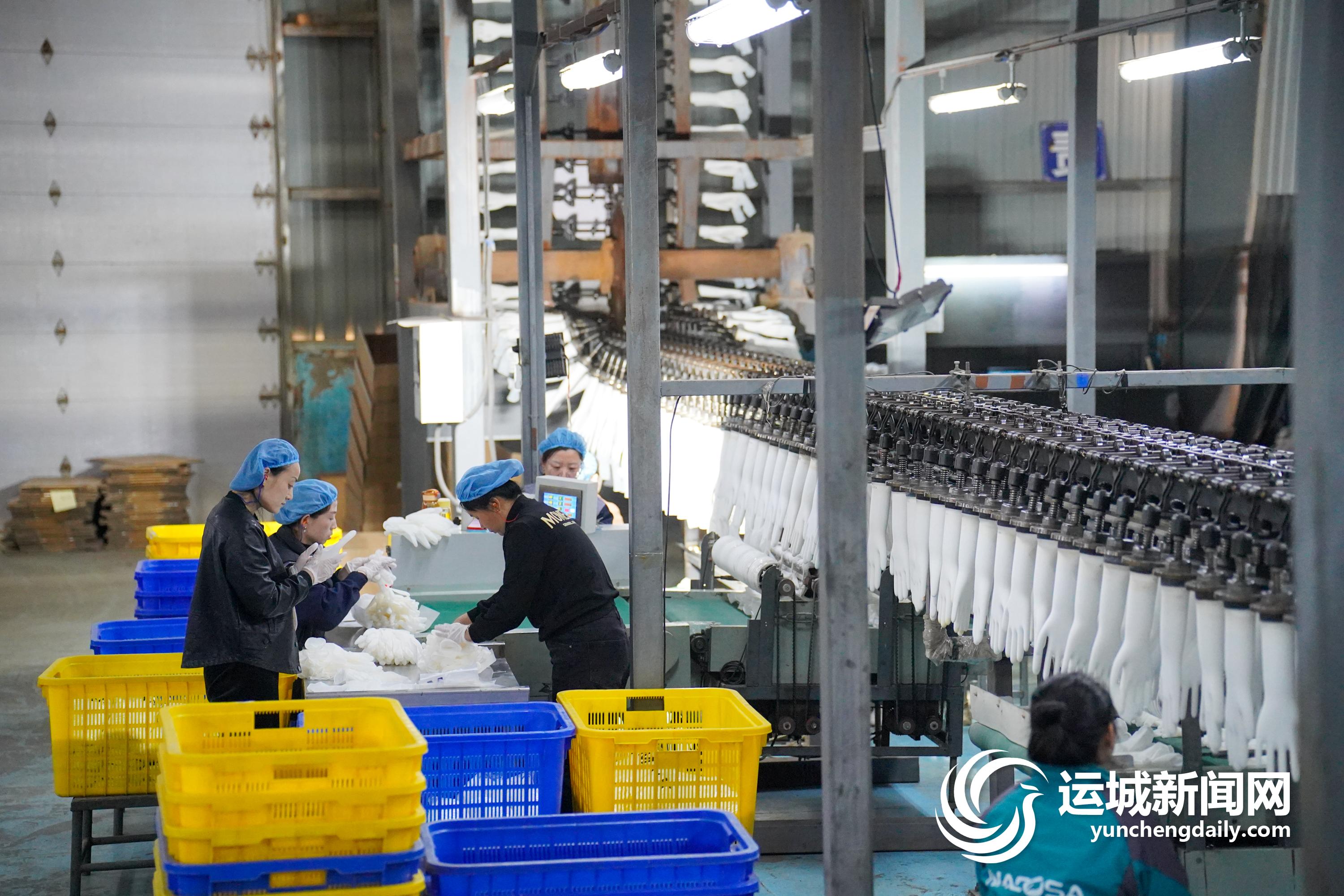 近日,山西纳科医疗科技有限公司职工在车间生产丁腈手套。该公司由江浙两地企业联合在运投资兴办,是闻喜县委、县政府重点孵化项目,2022年丁腈手套销量近三亿只,年产值八千万元。
