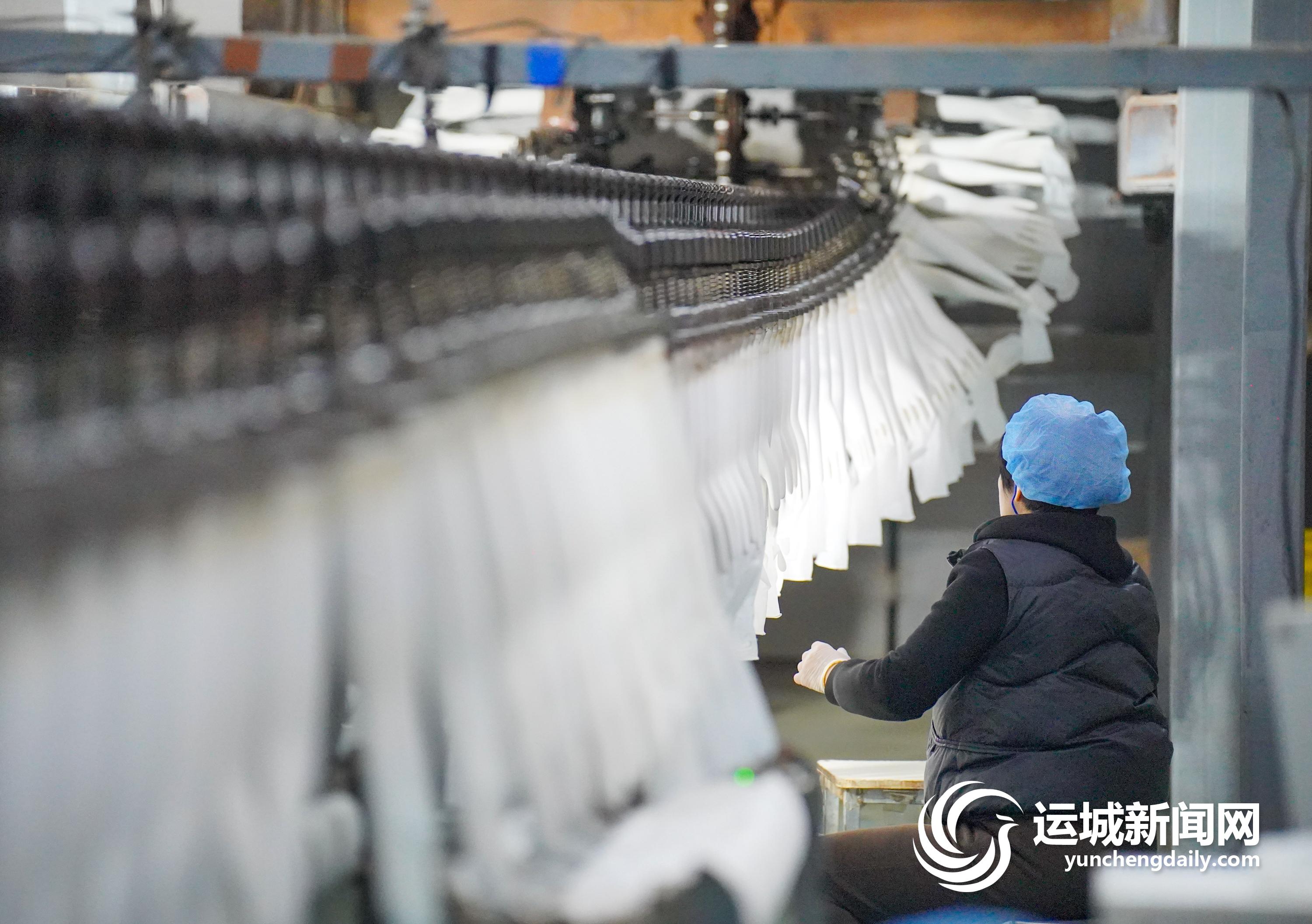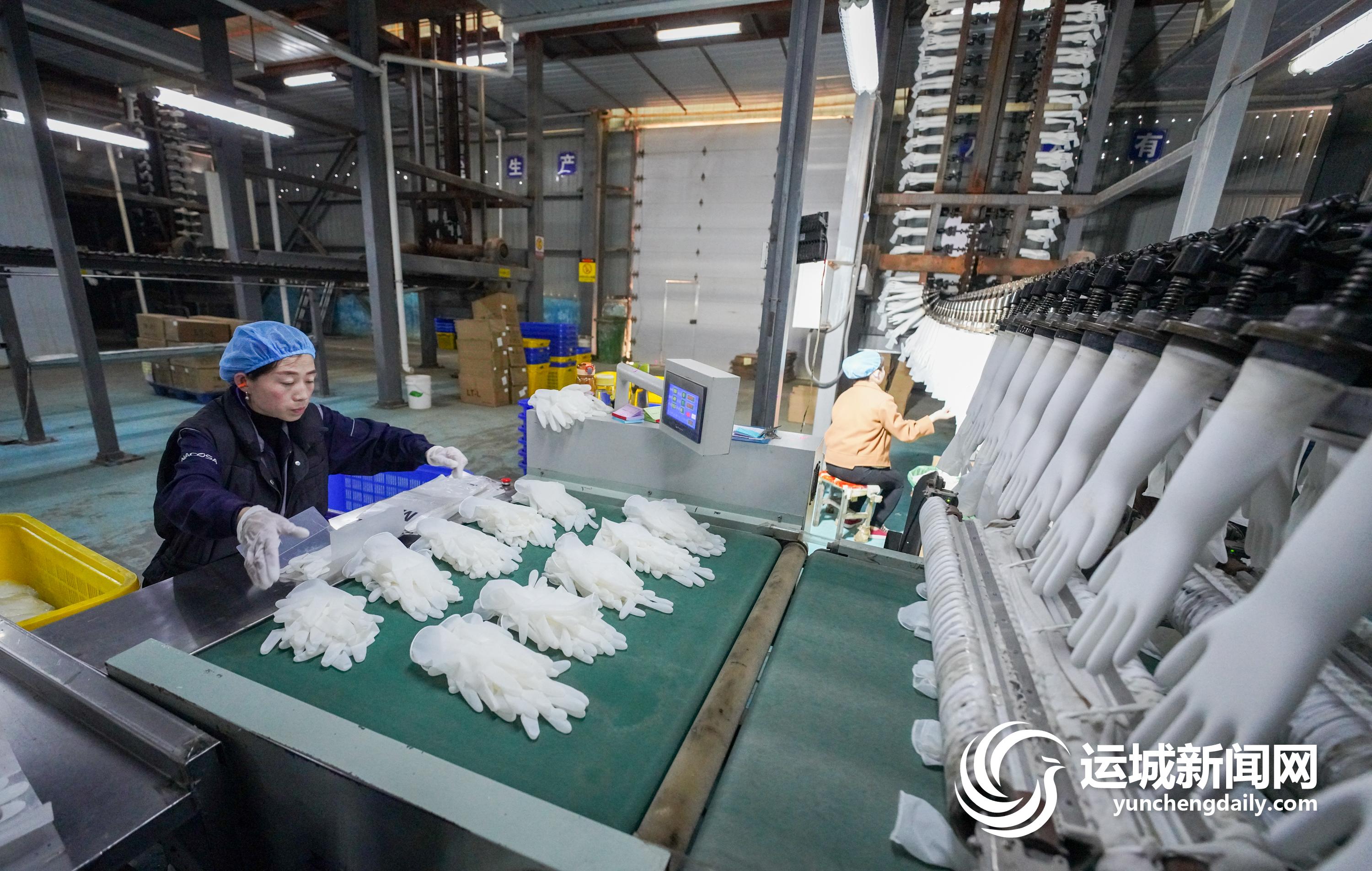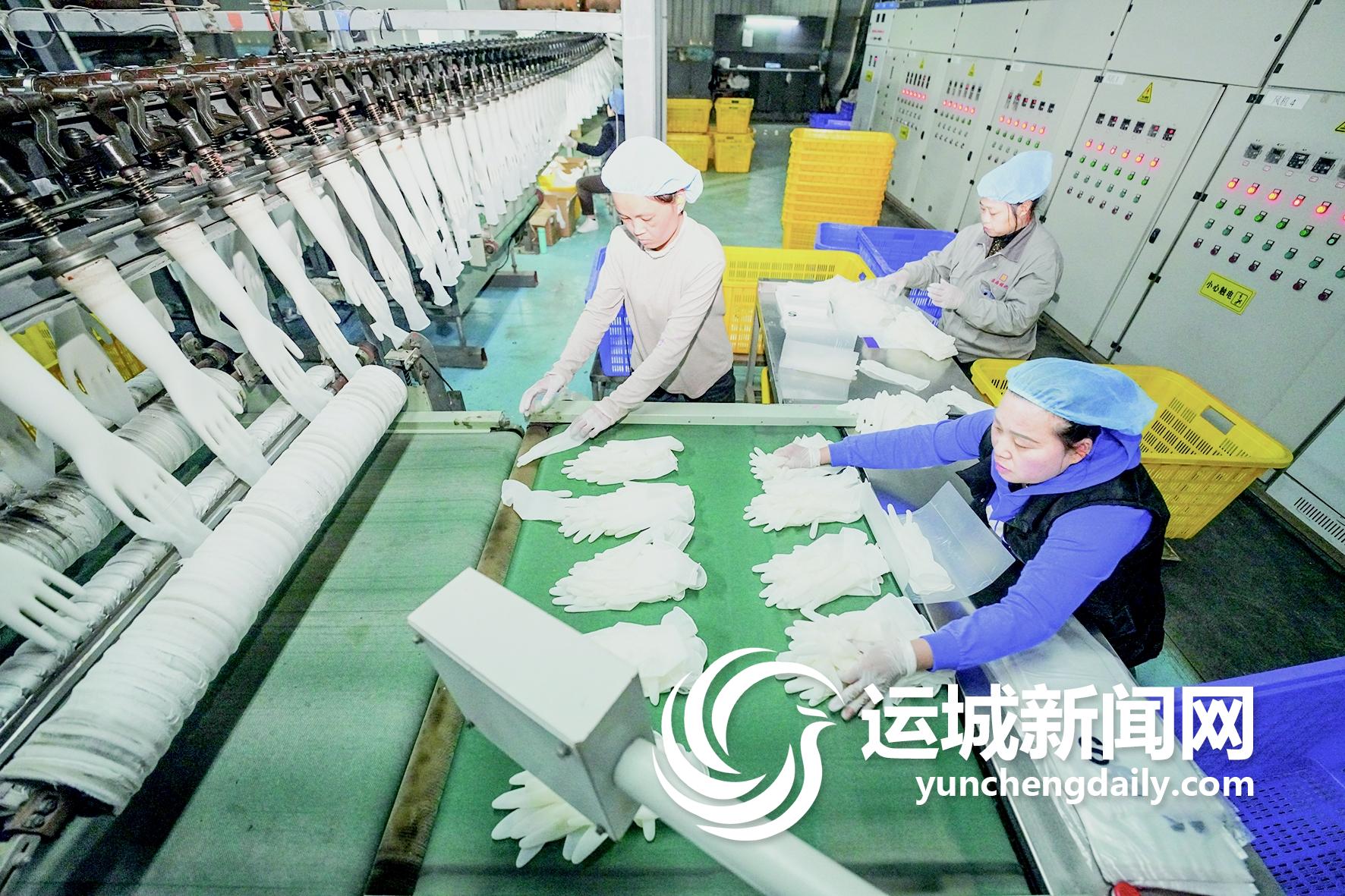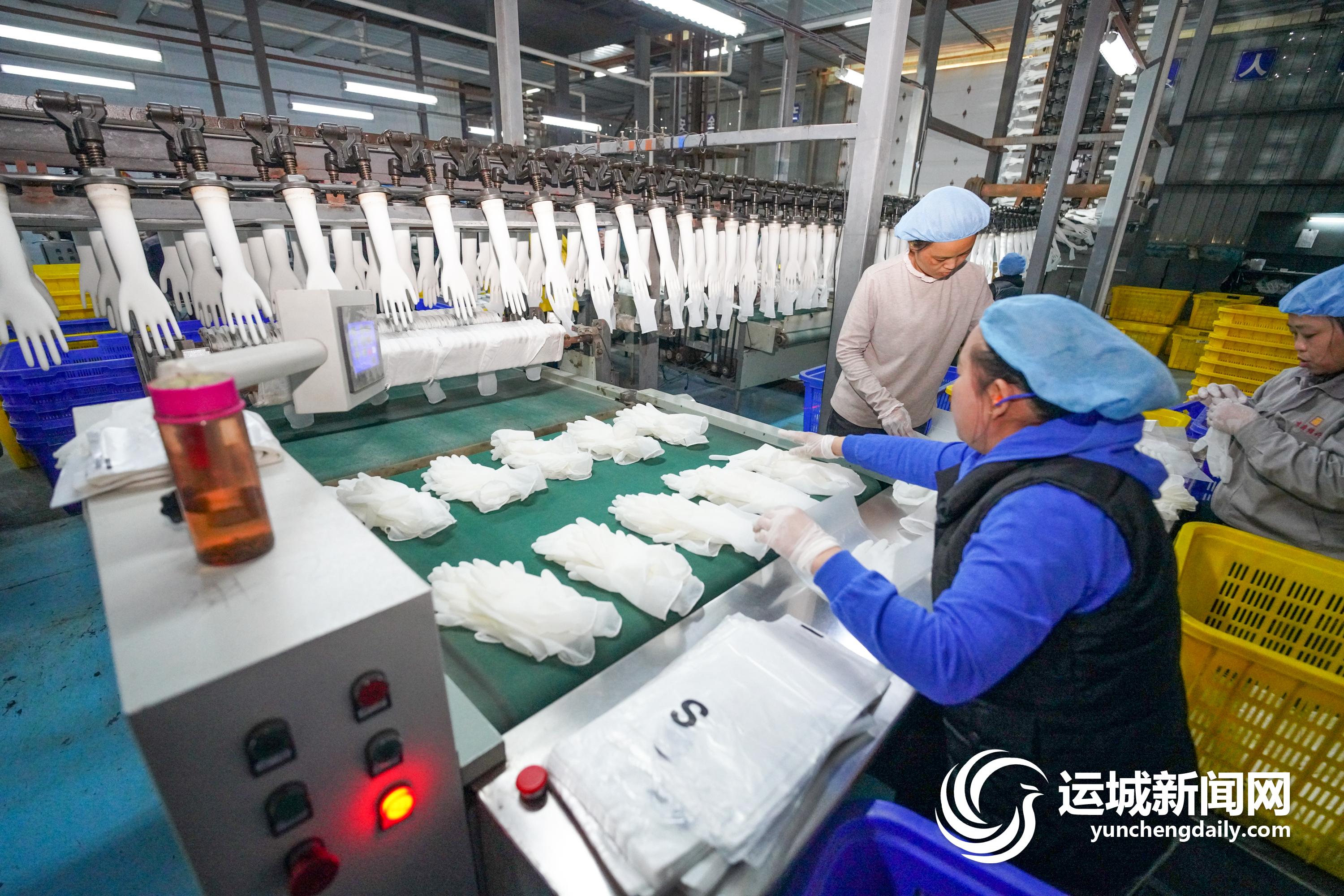 近日,山西纳科医疗科技有限公司职工在车间生产丁腈手套。该公司由江浙两地企业联合在运投资兴办,是闻喜县委、县政府重点孵化项目,2022年丁腈手套销量近三亿只,年产值八千万元。