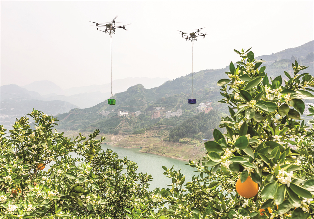 秭归县是脐橙种植大县。长期以来,从果园到公路主干道的脐橙转运主要靠人力,转运效率低、成本高。今年,该县探索使用无人机转运脐橙、化肥等,以减少人力成本,提高转运效率。