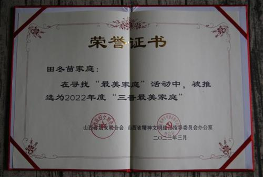 田冬苗用实际行动展示了巾帼力量,以及作为一名党员的责任与担当。2018年被评选为稷山县第九次妇女代表大会代表;2019年被评选为运城市第三次妇女代表大会代表;2021年、2022年先后被稷山县妇联评选为“十佳巾帼平安卫士”“最美十佳巾帼志愿者”……这些都是对她的肯定。