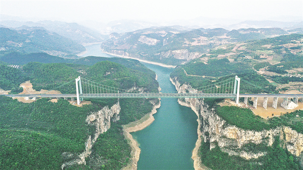 日前,由贵州路桥集团承建的贵金古(贵阳经金沙至古蔺)高速金烽乌江大桥项目主桥建设已完工,开始为通车前的荷载试验做准备。金烽乌江大桥是贵金古高速公路项目的控制性工程之一,桥梁全长1473.5米。 新华社记者 杨文斌 摄