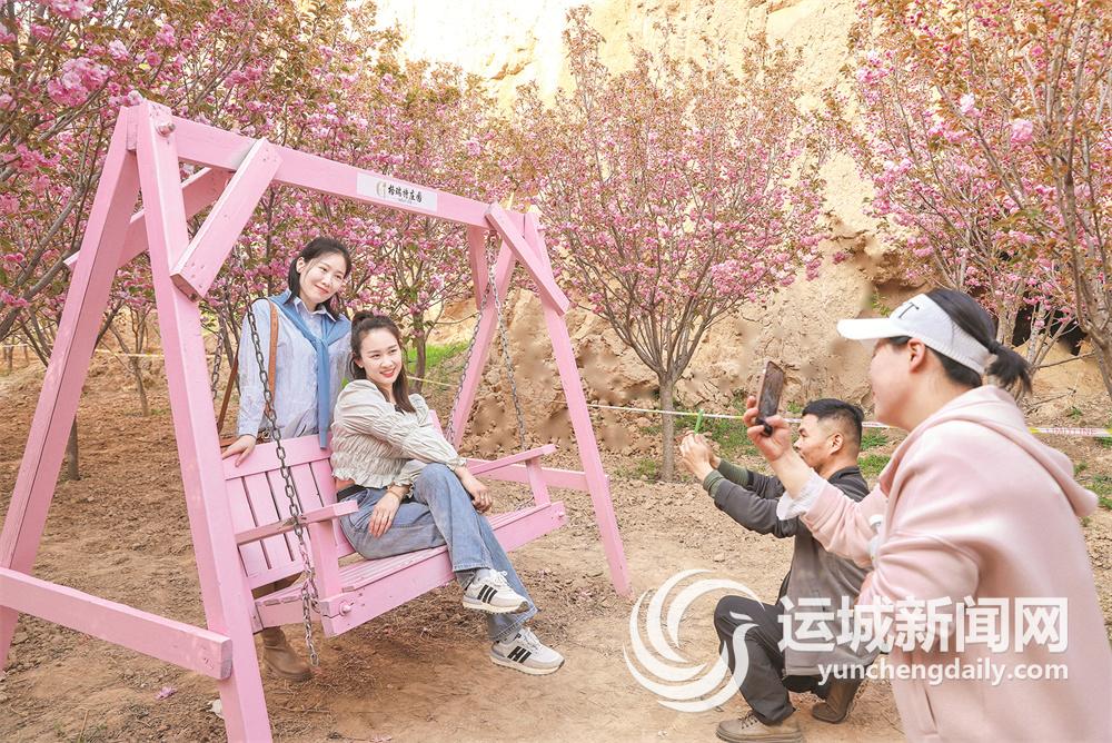 春日里,红色革命教育基地夏县堆云洞樱花谷里香气袭人,一簇簇粉色的樱花竞相绽放,吸引了众多游客前来赏樱花、享春光。