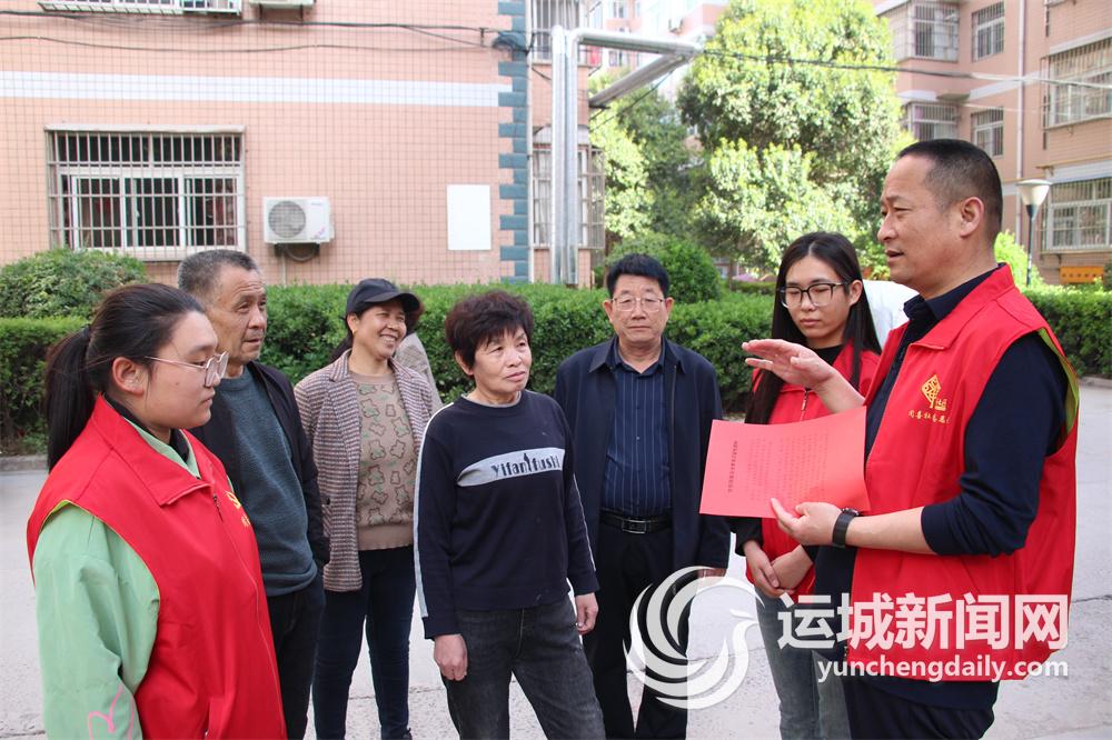 4月11日,闻喜县社区服务中心太风东街社区工作人员在辖区万福花园小区,向居民进行国家安全教育宣传。