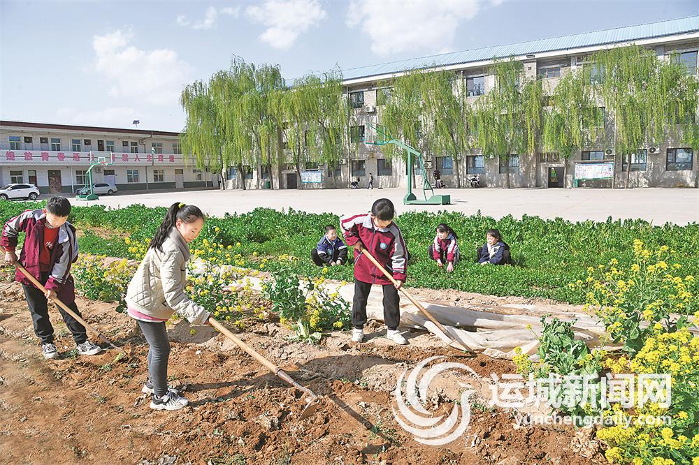 闻喜县城南小学师生近日在学校试验田开展现场教学和劳动实践。特约摄影 温徐旺 摄