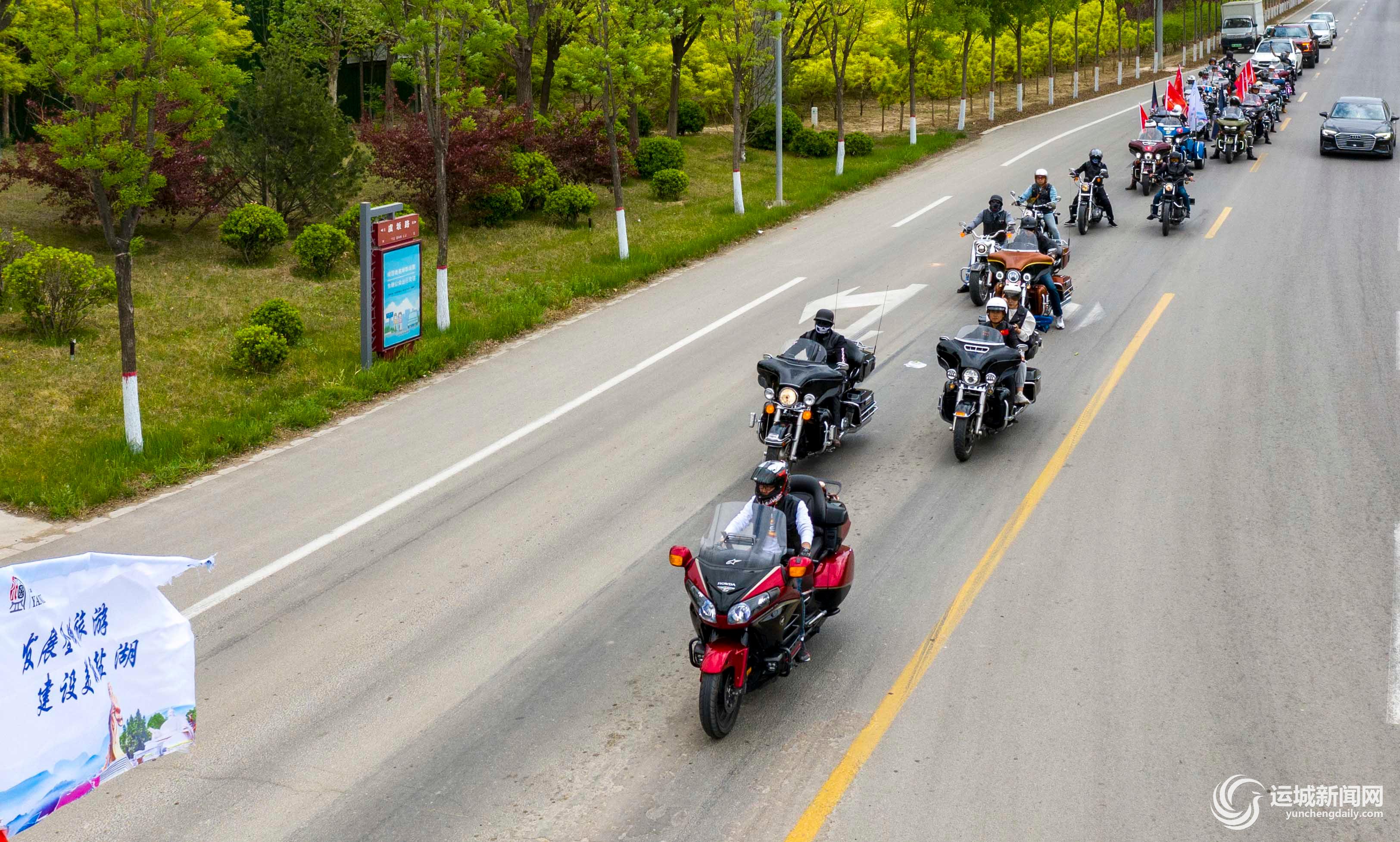 ▲4月14日,山西飙风雷骑文旅公益俱乐部的骑手们在我市骑行。