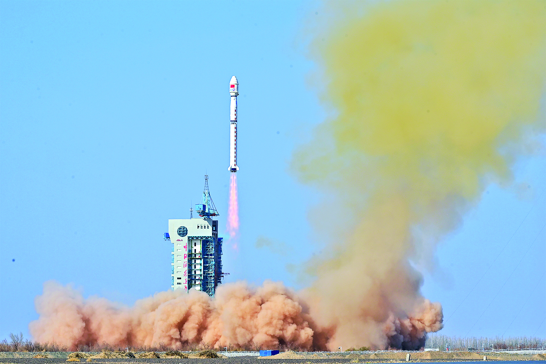 4月16日9时36分,我国在酒泉卫星发射中心使用长征四号乙运载火箭成功将风云三号07星发射升空,卫星顺利进入预定轨道,发射任务获得圆满成功。 新华社发(汪江波 摄)